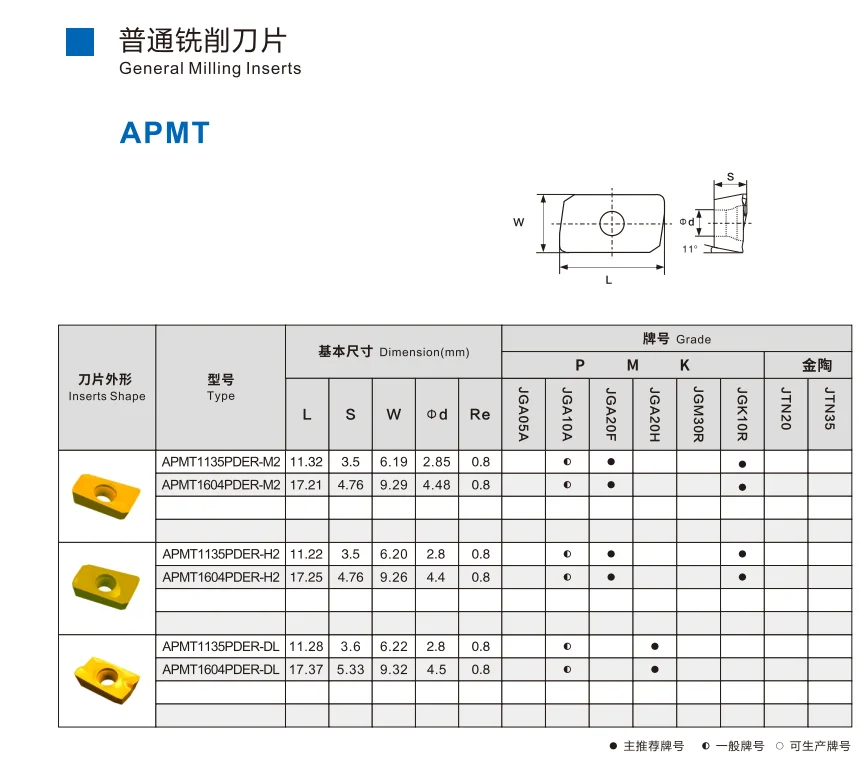 APMT1604PDER-H2 APMT1135PDER-H2 insertos de carburo sólido fresado CNC recubrimiento PVD/CVD pieza de acero