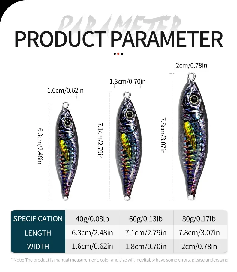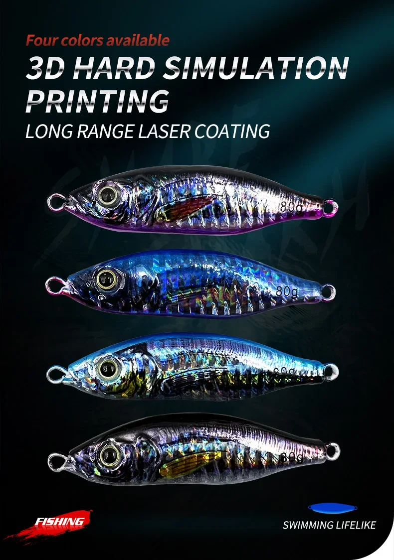 Impresión 3D cebo de pesca duro 40 60 80g Plantilla de Metal de simulación pesca de agua salada lanzar señuelos de Jigging lento Pesca