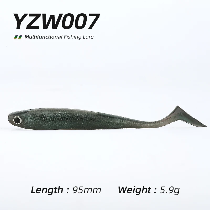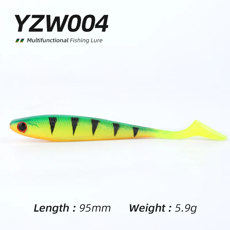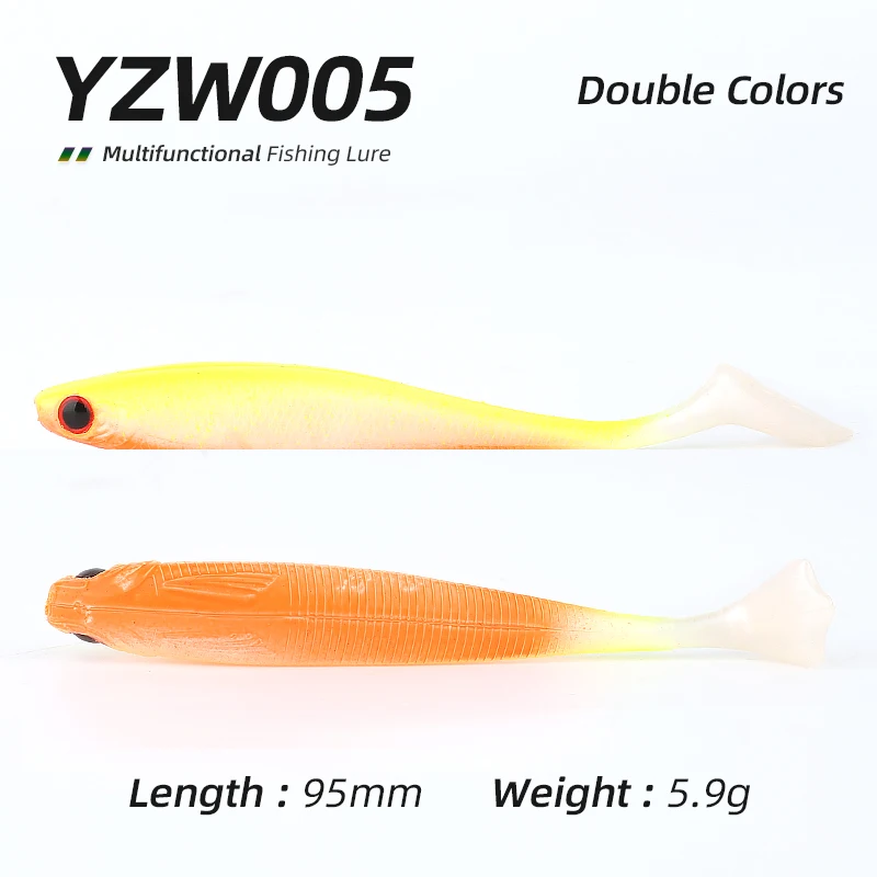 Ardea-señuelo suave de silicona Artificial, cebo con forma de pez, doble Color, Swimbait, gusano, Wobblers, aparejos de pesca, 95mm, 5,9g, 5 piezas