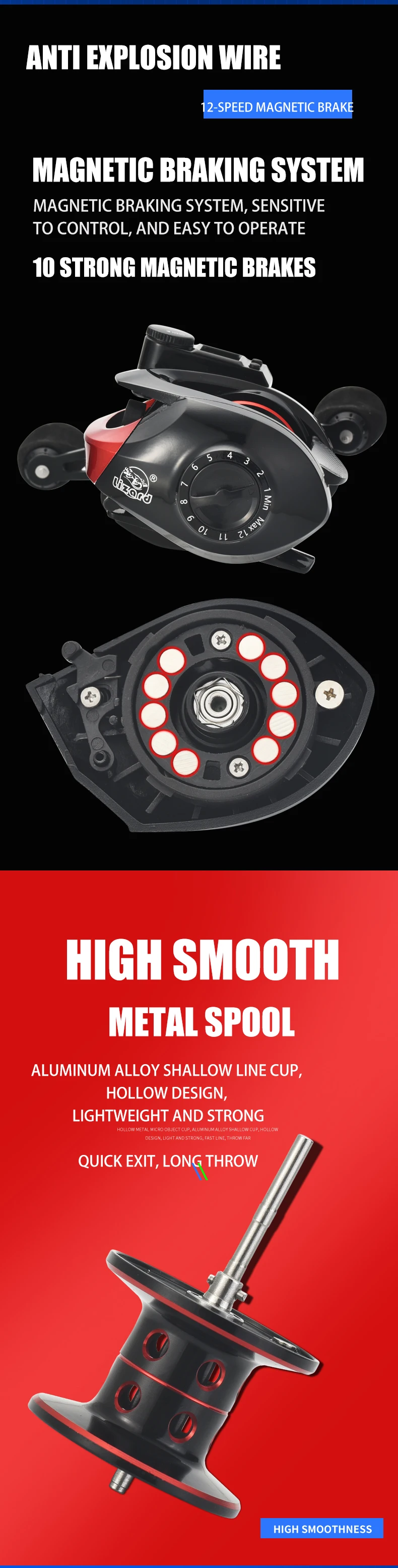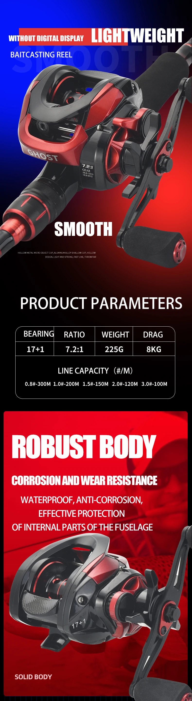 Artículos de pesca con carrete de metal para pesca en agua salada, mostrar o no Baitcasting, 17 + 1BB, relación de engranaje 7,2: 1, 2022