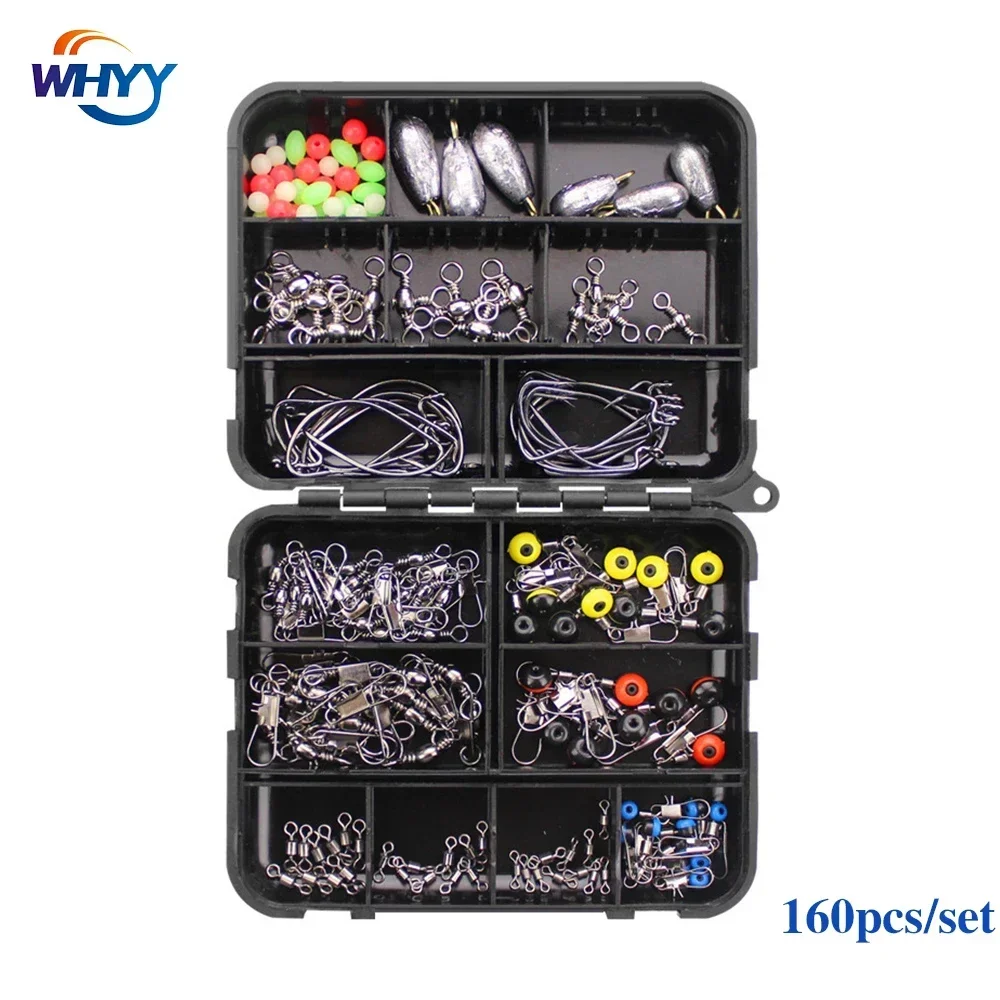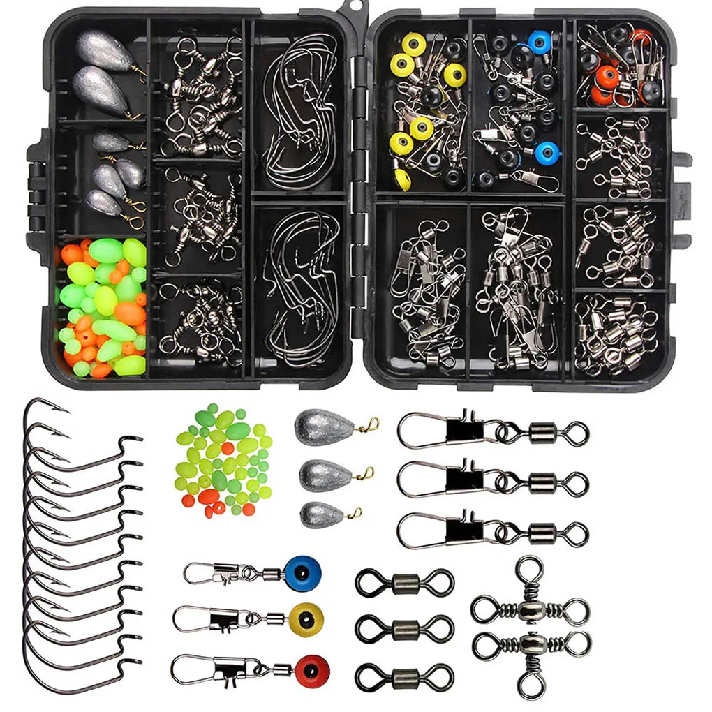 Juego de herramientas de pesca, caja de cuentas de pesca, señuelo, cebo, anzuelo giratorio, aparejos con 24 compartimentos, caja de accesorios de pesca, 184 Uds.