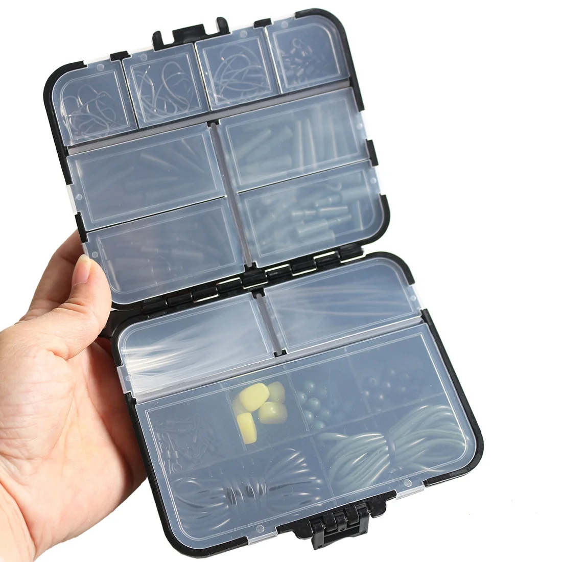 2.Con 24 compartimentos individuales, los compartimentos tienen cubiertas transparentes, para que puedas guardar tus anzuelos, pesas, chupetes, moscas, etc.¡Limpio y ordenado y en tu bolsillo o bolsa de pesca!