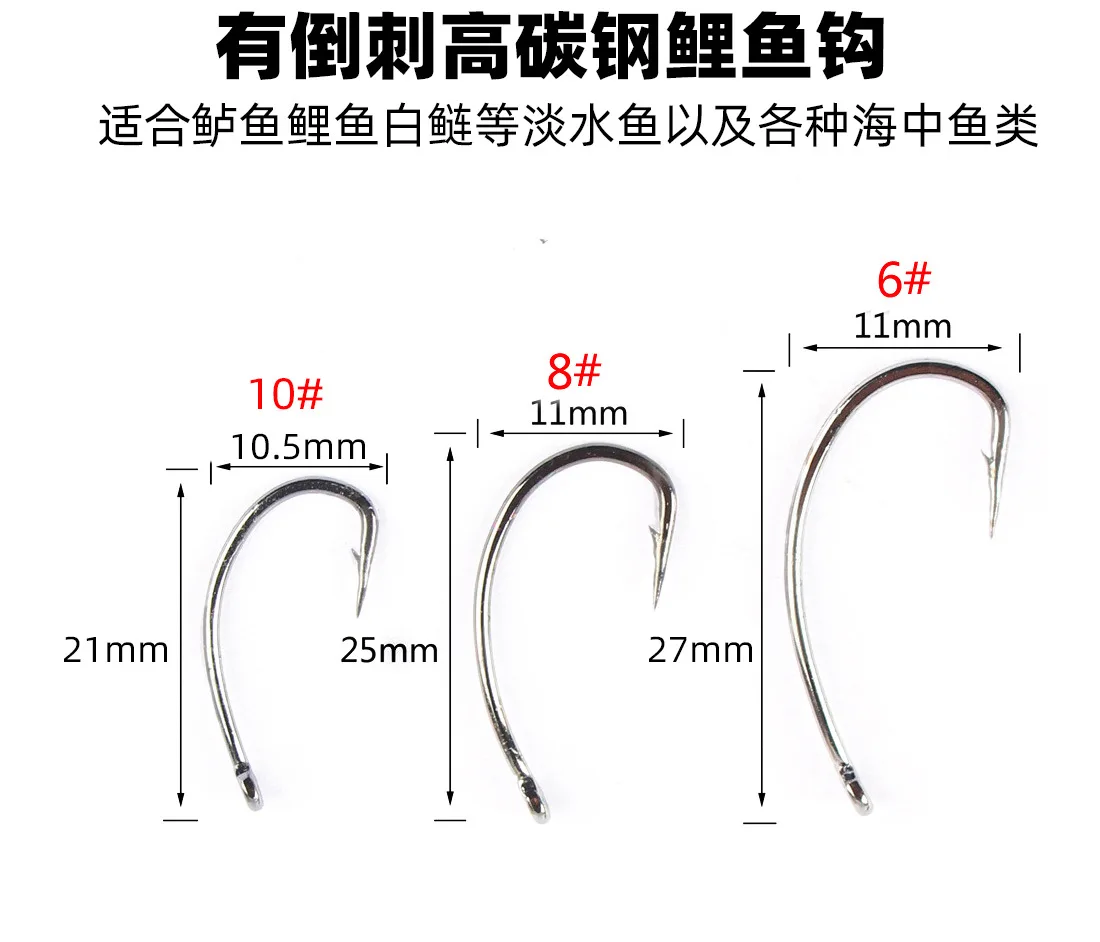 60 uds x anzuelos de pesca (6#8#10#Gancho de carpa)