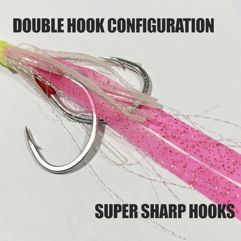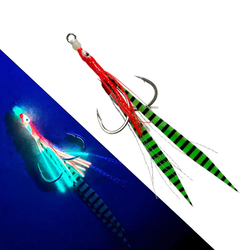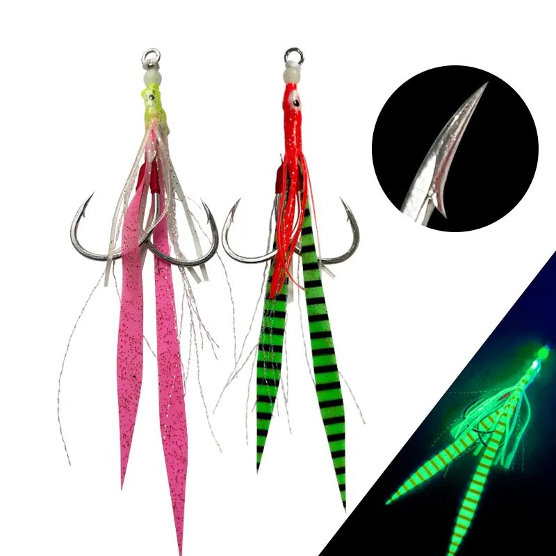 AS 10 pares de anzuelos de pesca con forma de pescador, anzuelo doble brillante, señuelo de plantilla, barco de pesca, anzuelo de Lucio de pesca en mar, anzuelo de ayuda con púas de Jigging lento/rápido