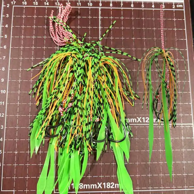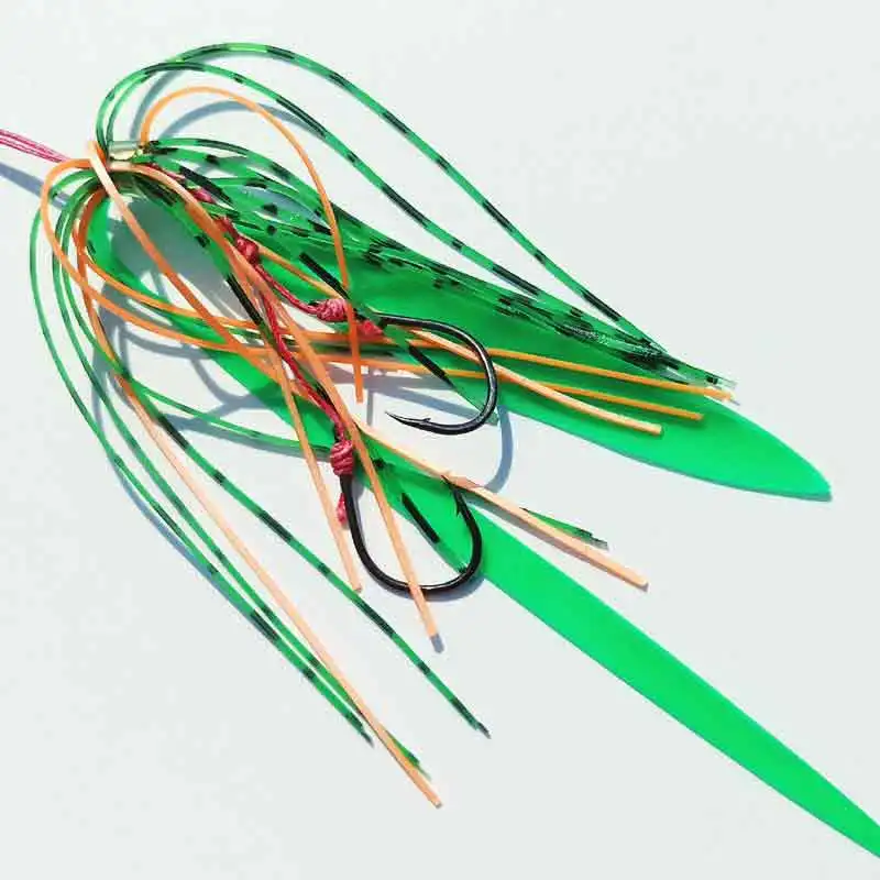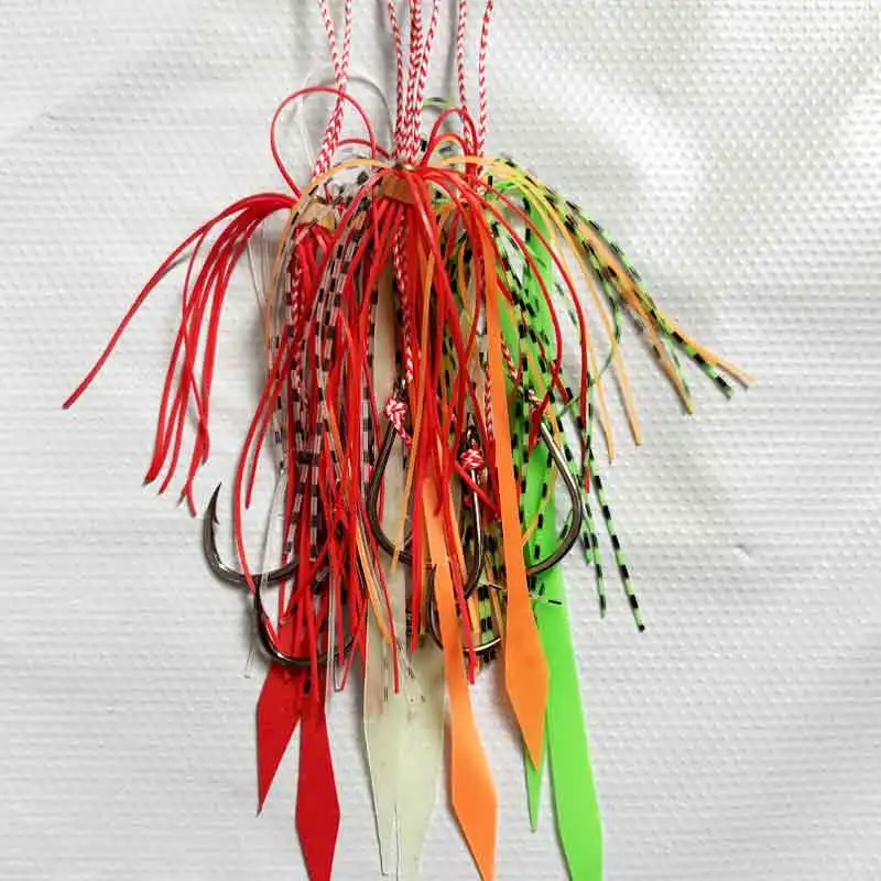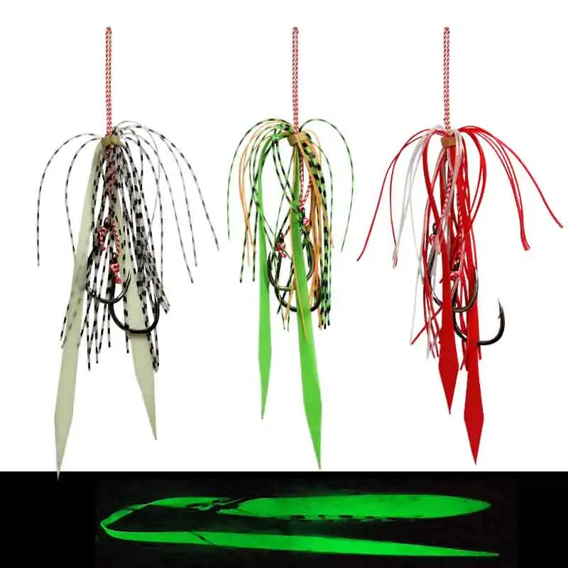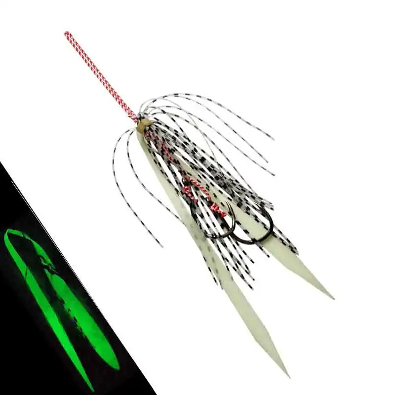 AS 10 pares de anzuelos de púas, anzuelos dobles, faldas de calamar suaves con forma de pulpo brillante, anzuelos de Pesca, plantilla de cebo de Metal, aparejos de anzuelo de asistencia para Pesca