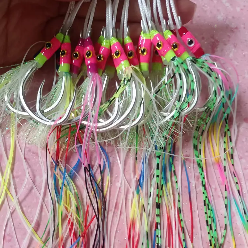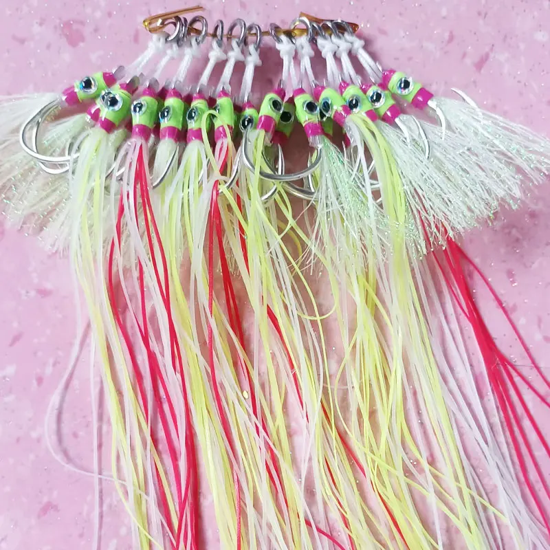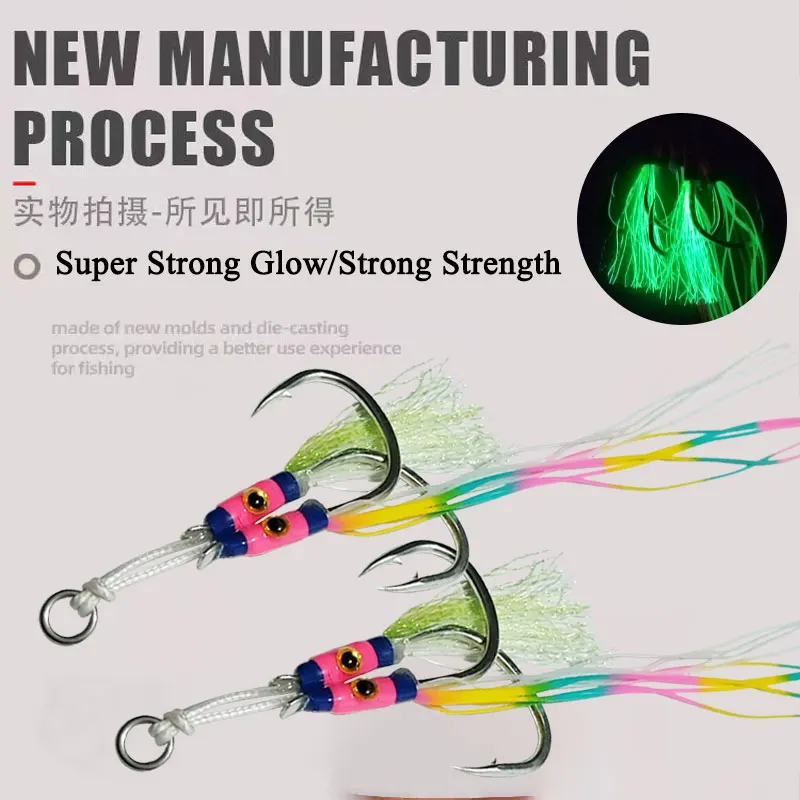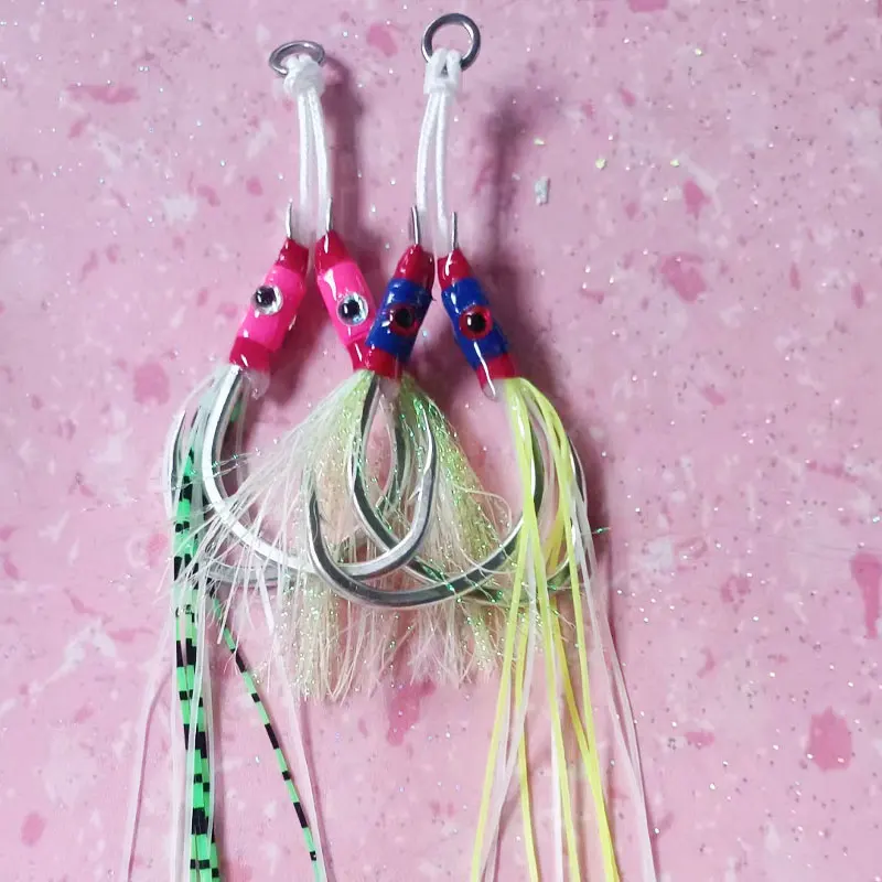 AS 10 pares de anzuelos de púas, anzuelos de pesca, anzuelo doble, fuerte resistencia, anticorrosión, Jigging lento y rápido, anzuelo de señuelo de agua salada