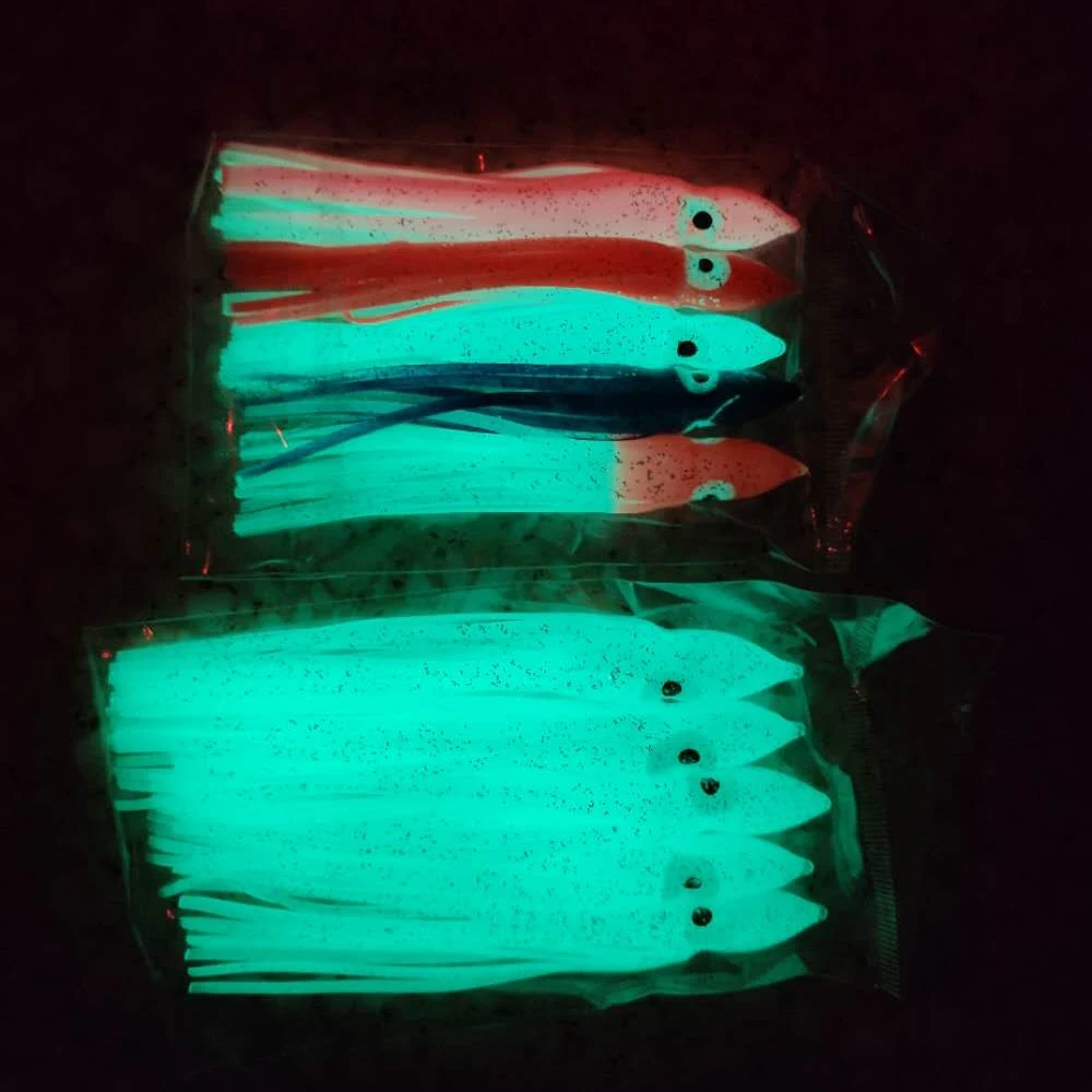 AS 10 Uds. 12cm pulpo calamar señuelo suave faldas de goma cebo luminoso anzuelo de calamar faldas Señuelos de pesca cebos artificiales de pez vela