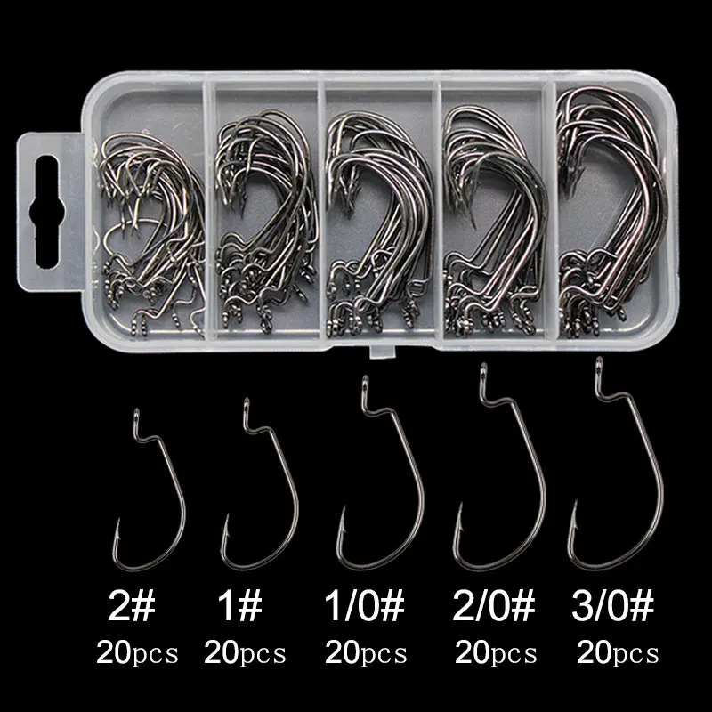 AS 100 unids/lote anzuelos de pesca de gusanos suaves anzuelos texanos de acero rico en carbono anzuelos súper cerradados anzuelos Softjerk aparejos de pesca