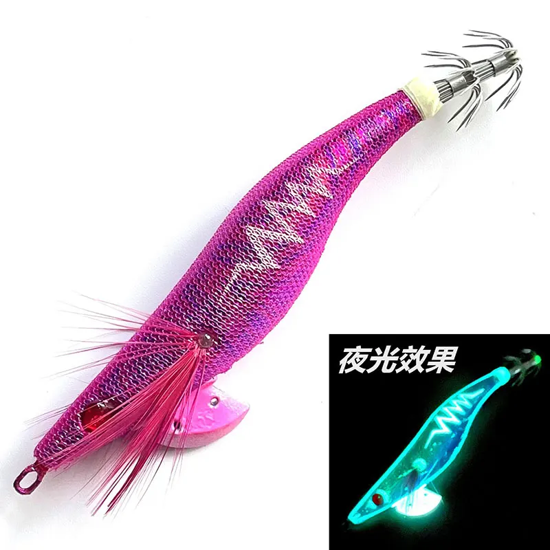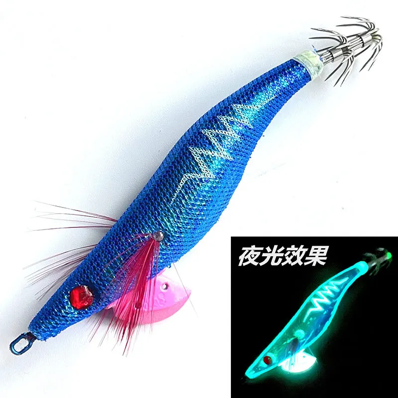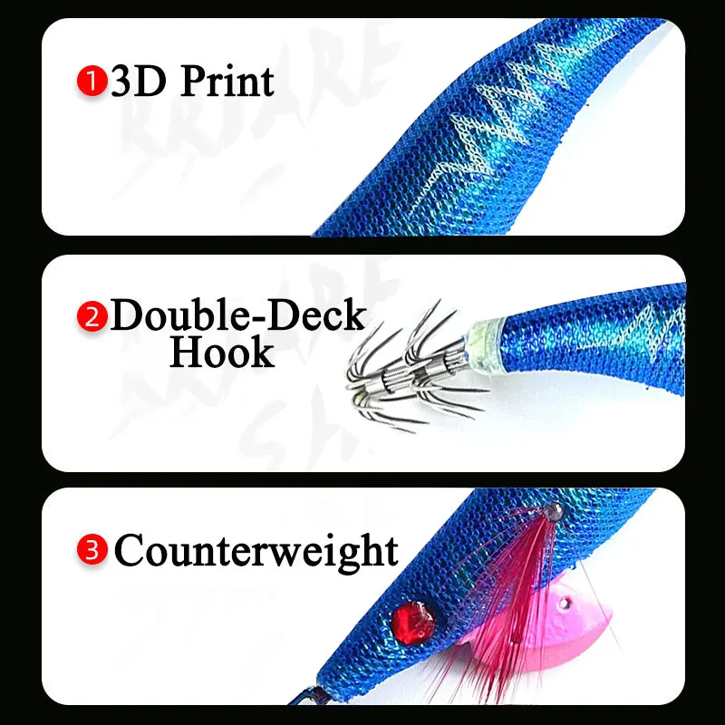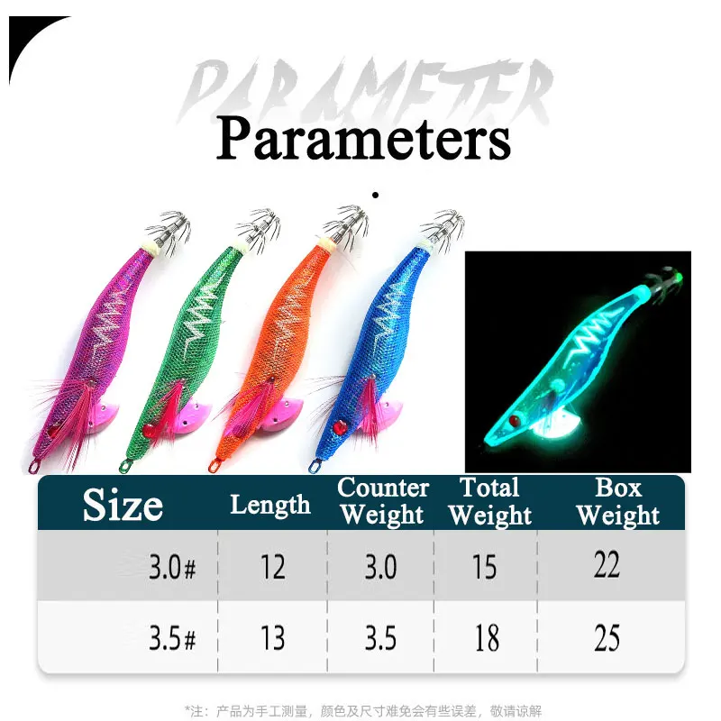 AS 4 Uds cebo duro resplandeciente coronas de camarones plantillas de calamar 3,0 # 3.5 # Juego de señuelos de pesca en el mar, sepia Artificial, pulpo, pesca de invierno