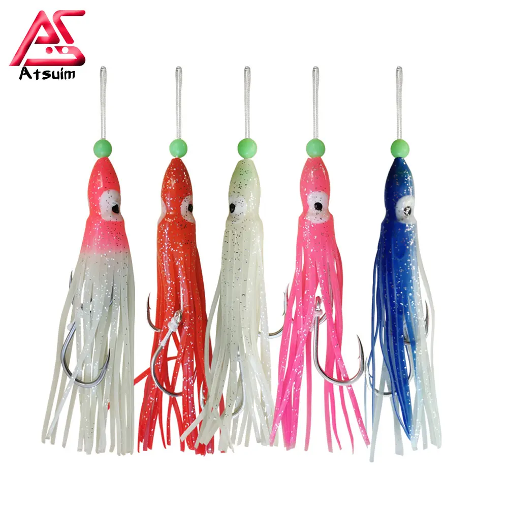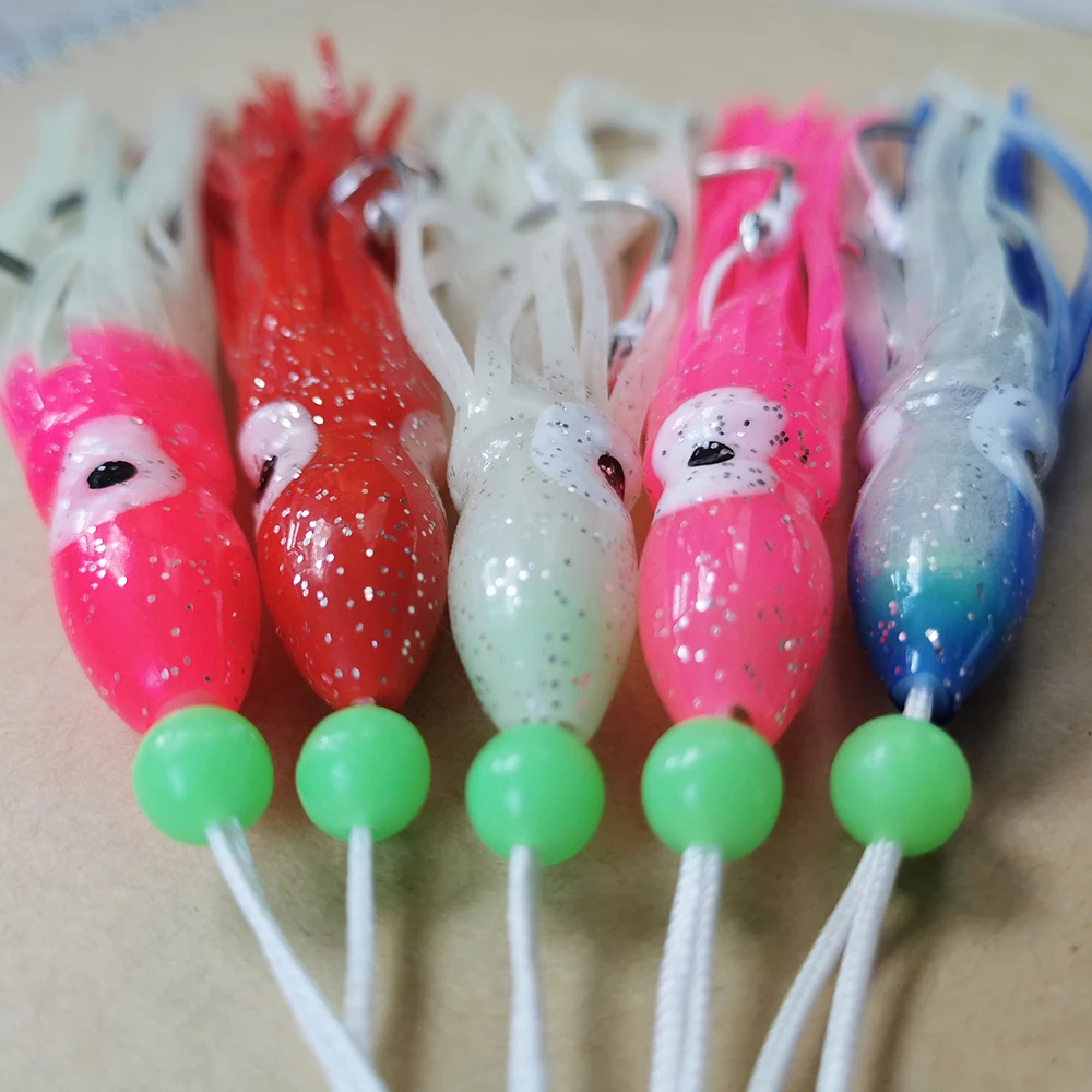 AS 5 pares de anzuelos de púas, anzuelos dobles, faldas de calamar suaves con forma de pulpo brillante, anzuelos de Pesca, plantilla de cebo de Metal, aparejos de anzuelo de asistencia para Pesca