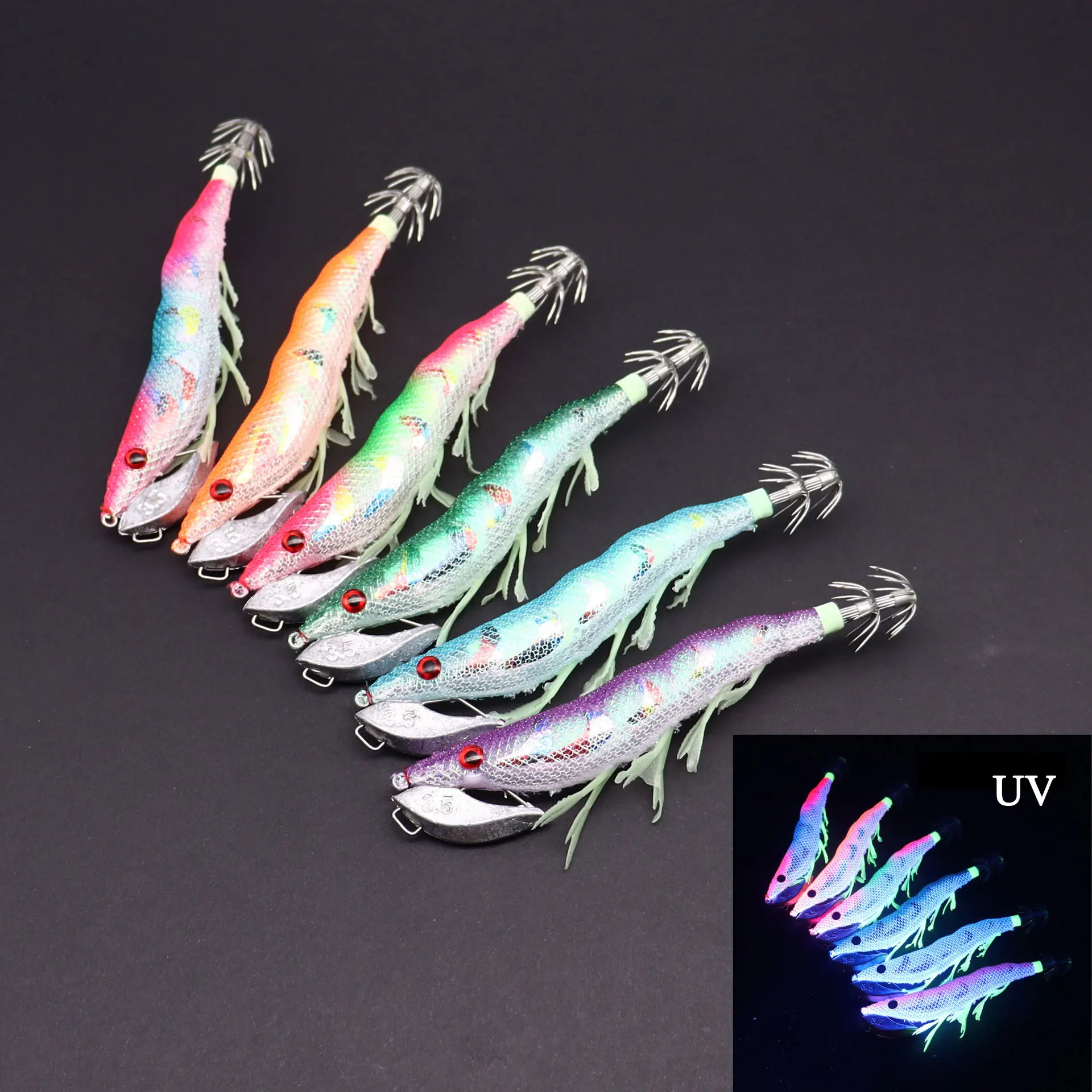 AS-anzuelo para camarones con cebo duro, coronas UV realistas, 42g, plantillas de calamar con sonido de ruido, juego de Señuelos de Pesca de Mar, sepia Artificial, pulpo
