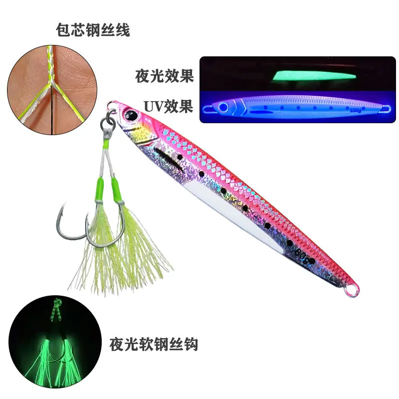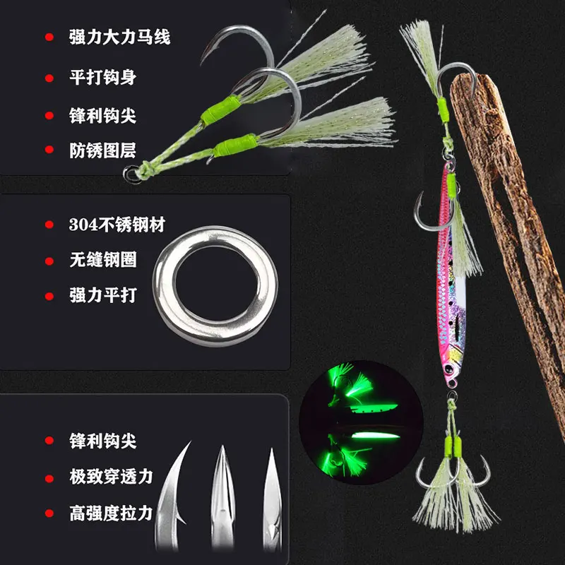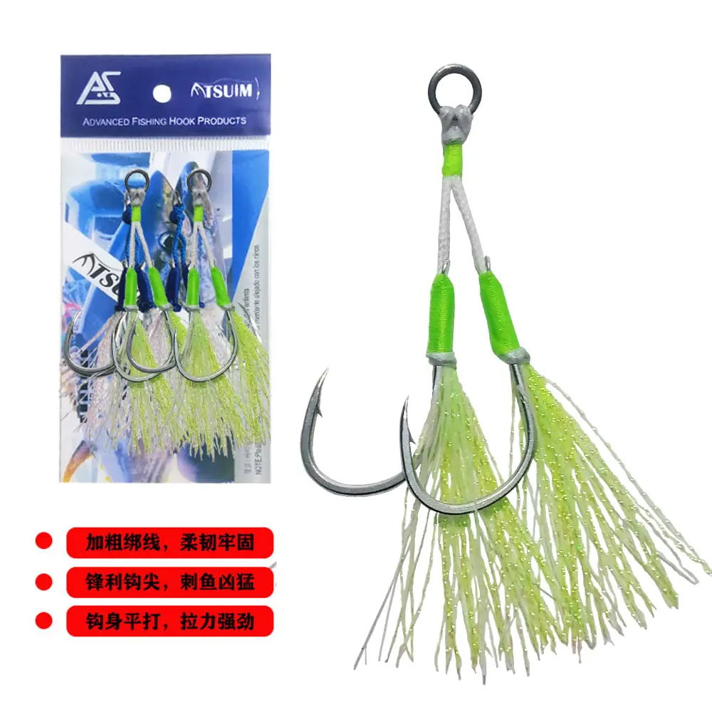 AS-anzuelo de pesca de alambre inoxidable suave, anzuelos de Jigging lento/rápido, doble púas, señuelo de asistencia, plantilla brillante