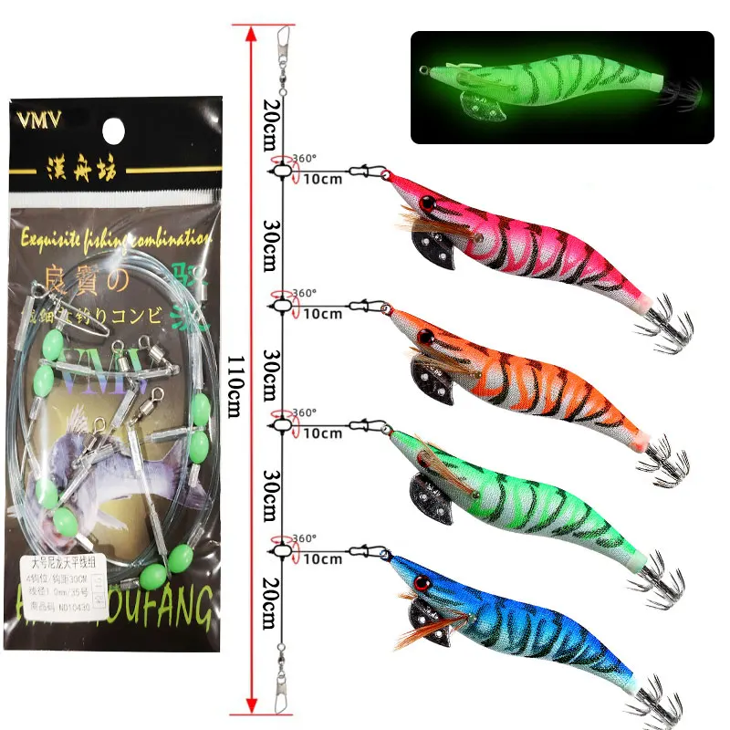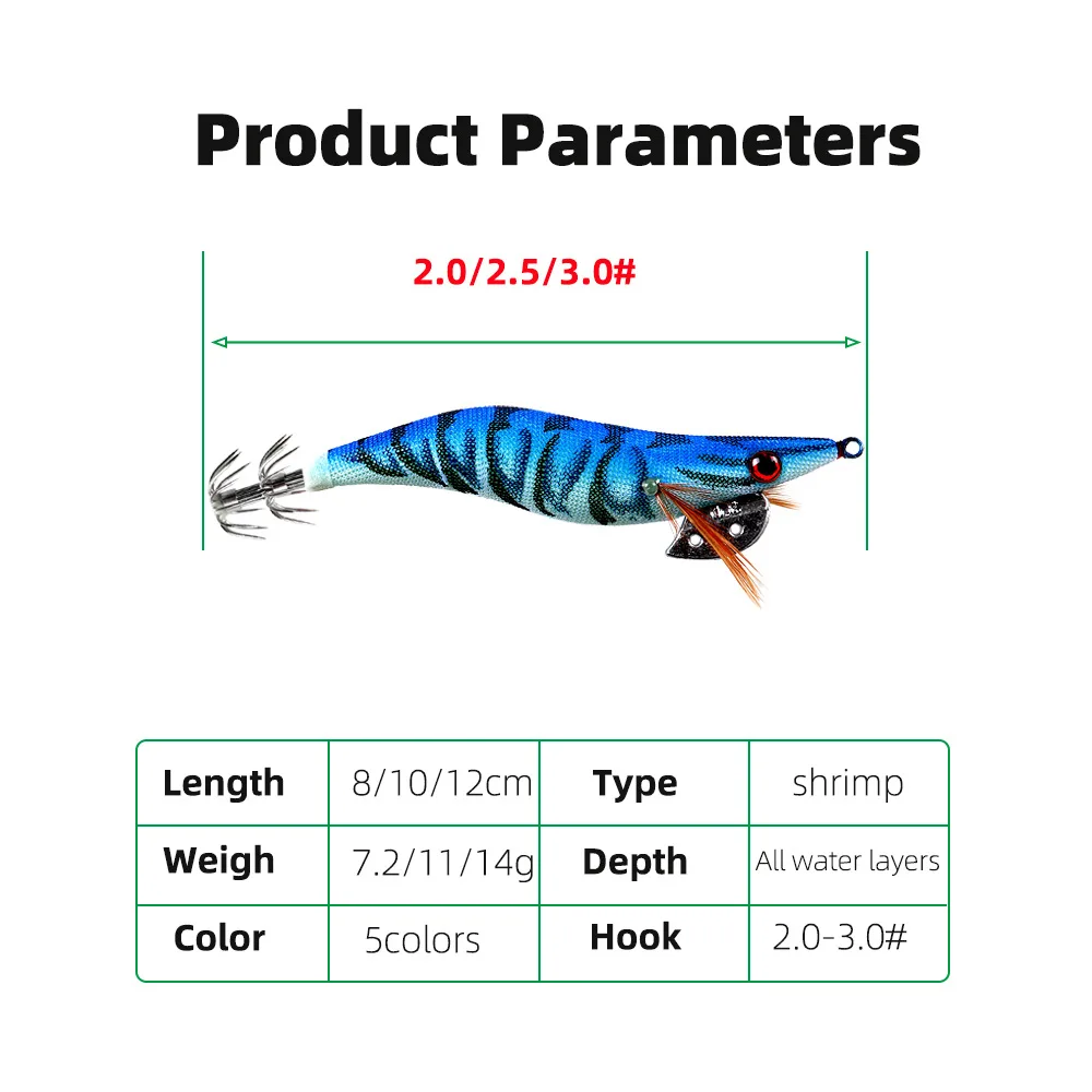 AS Cluster-cebo duro con gancho para camarones, coronas brillantes, plantillas de calamar 2,0 # 2.5 # 3.0 # Juego de señuelos de pesca en el mar, sepia artificial, pulpo