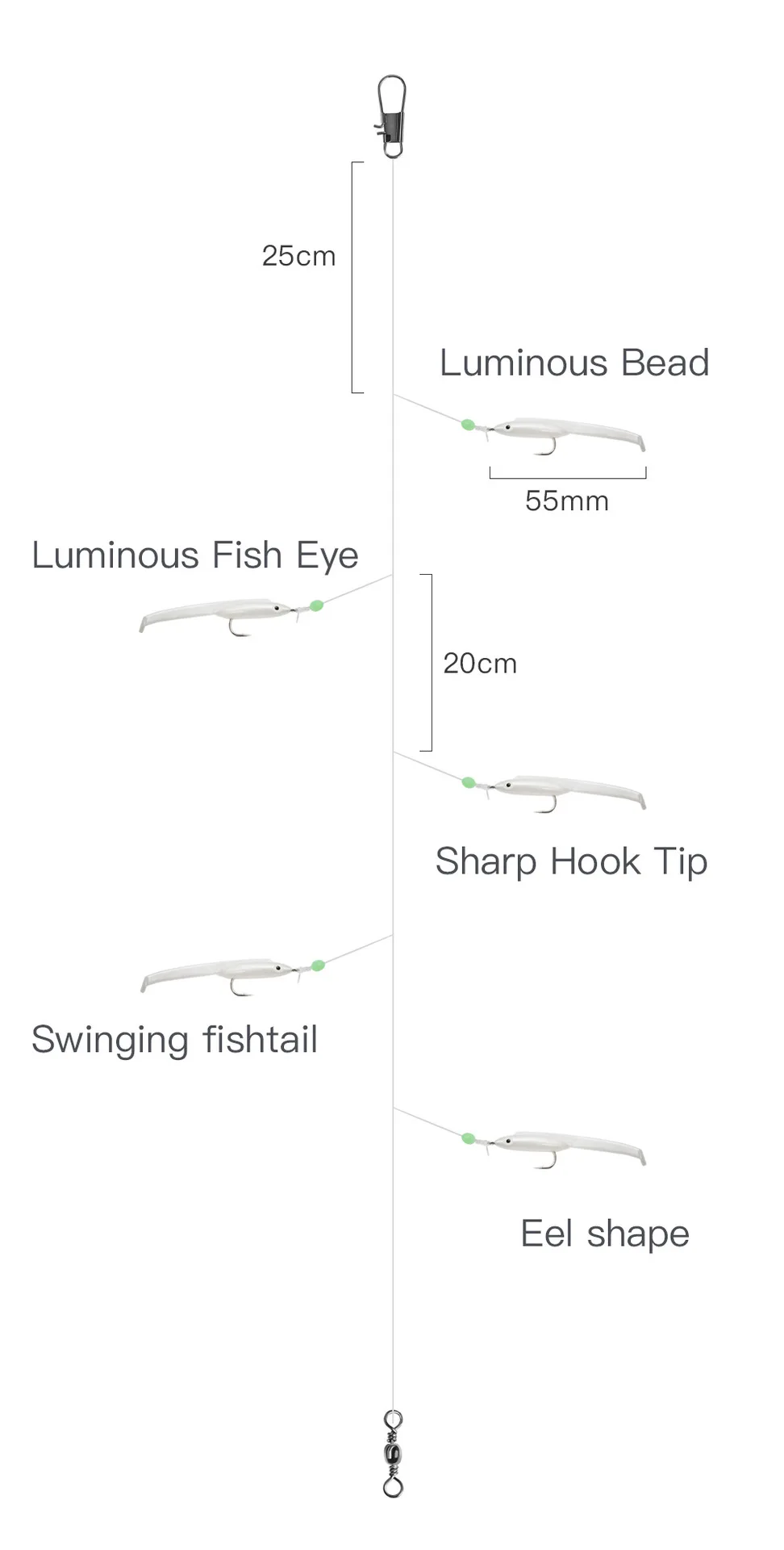 AS Cluster-señuelo blando Bimoo, Plataforma luminosa de Anguila Sabiki, anzuelos de cuerda, señuelos, peces, calamar, caballa, Scad, aparejos de pesca de agua salada