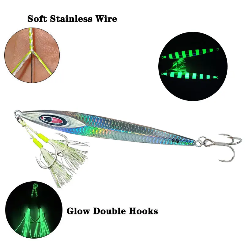 AS Fast JIg señuelo Pesca Glow Jig velocidad caída pescador 60g90g120g barco Pesca en el mar Metal duro cebo Vertical hundimiento Pesca cebo