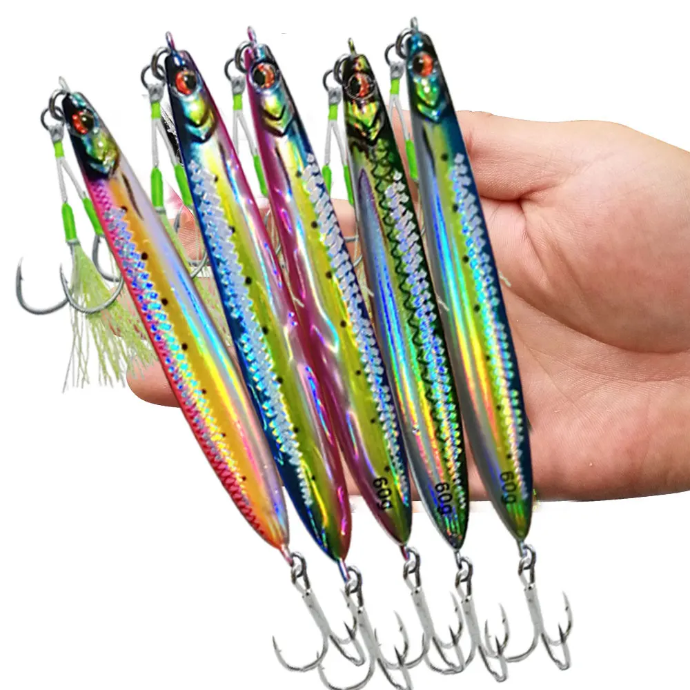 AS Fast JIg-señuelo de Pesca con plantilla brillante, anzuelo triple con estampado 3D, velocidad que cae, 40g, 60g, 80g, cebo duro de Metal que se hunde, Jigging, cebo de Pesca