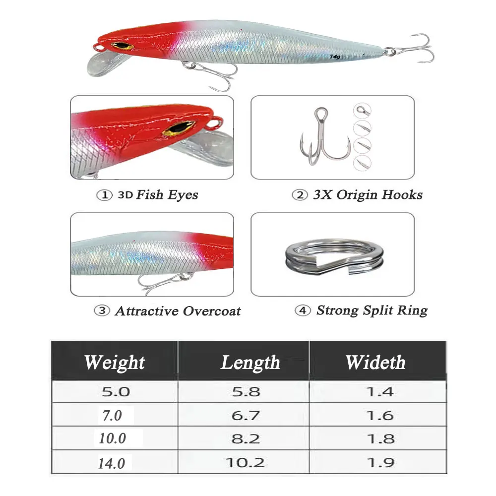 AS Minnow señuelo de Pesca 5g7g10g14g Topwater, Wobbler, ojo 3D, Crankbait duro, aparejos flotantes, cebo de natación