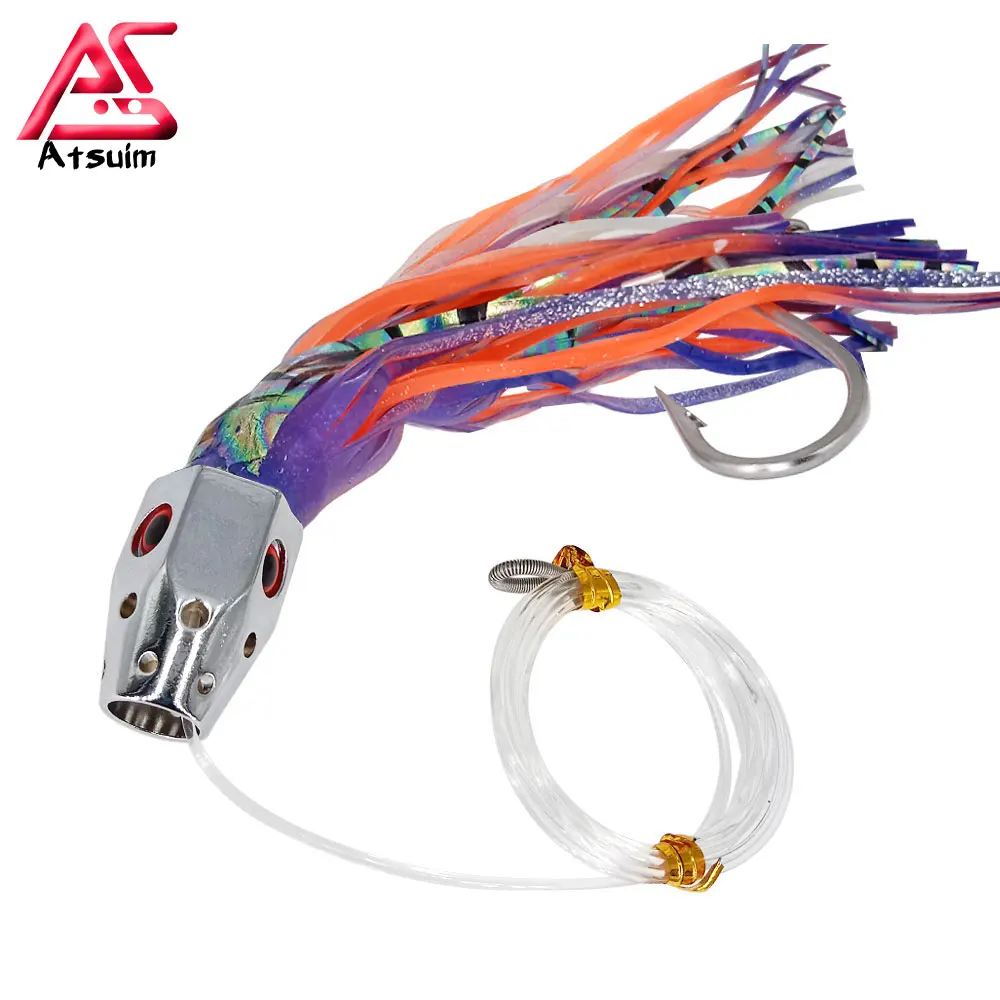 AS Trolling-señuelo con cabeza de cobre, falda de calamar, pulpo, 23cm, 185g, cebo con gancho, Pesca de arrastre, Pesca de atún, cebo duro