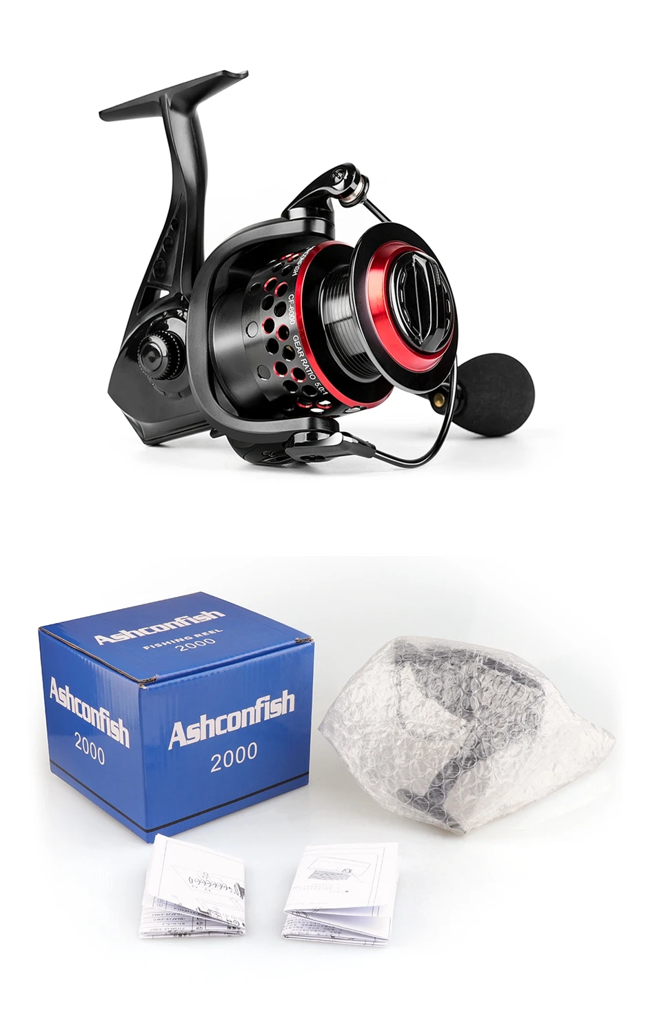 Ashconfish-carrete giratorio innovador resistente al agua, bobina de pesca con potencia de arrastre máxima de 17,6 lb para Lucio