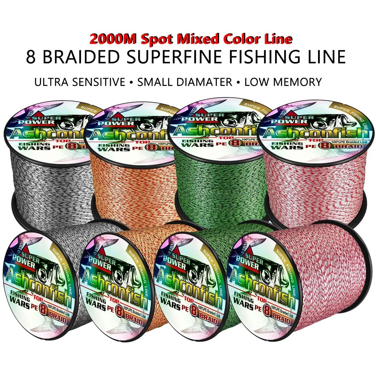Ashconfish nueva línea de punto de color mezclado trenza multifilamento 8 hebras de alta calidad 2000M PE línea de pesca trenzada extrema alambre Pesca