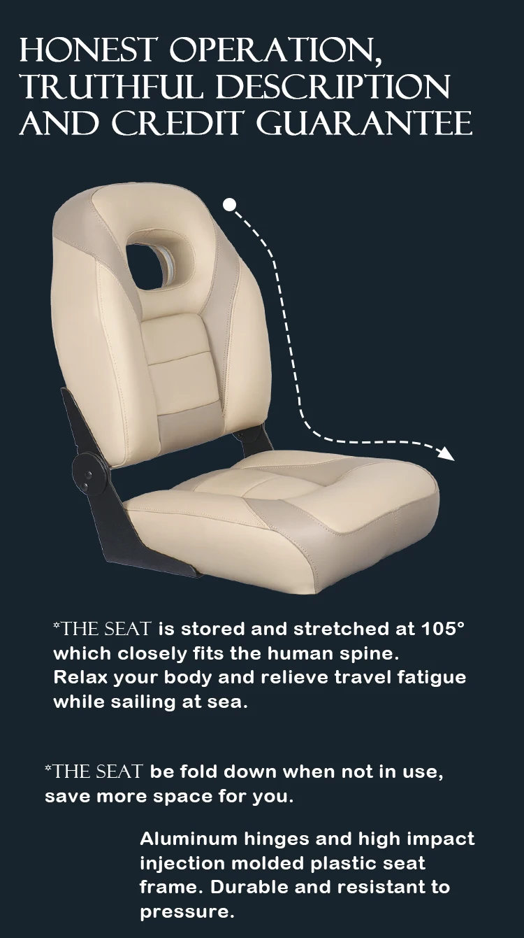 -- Practicidad y estética: nuestros asientos de barco son artículos esenciales en su barco, proporcionando un lugar cómodo para el capitán y los pasajeros. El color caqui no solo combina bien con la mayoría de los barcos, sino que también es muy resistente a la suciedad.