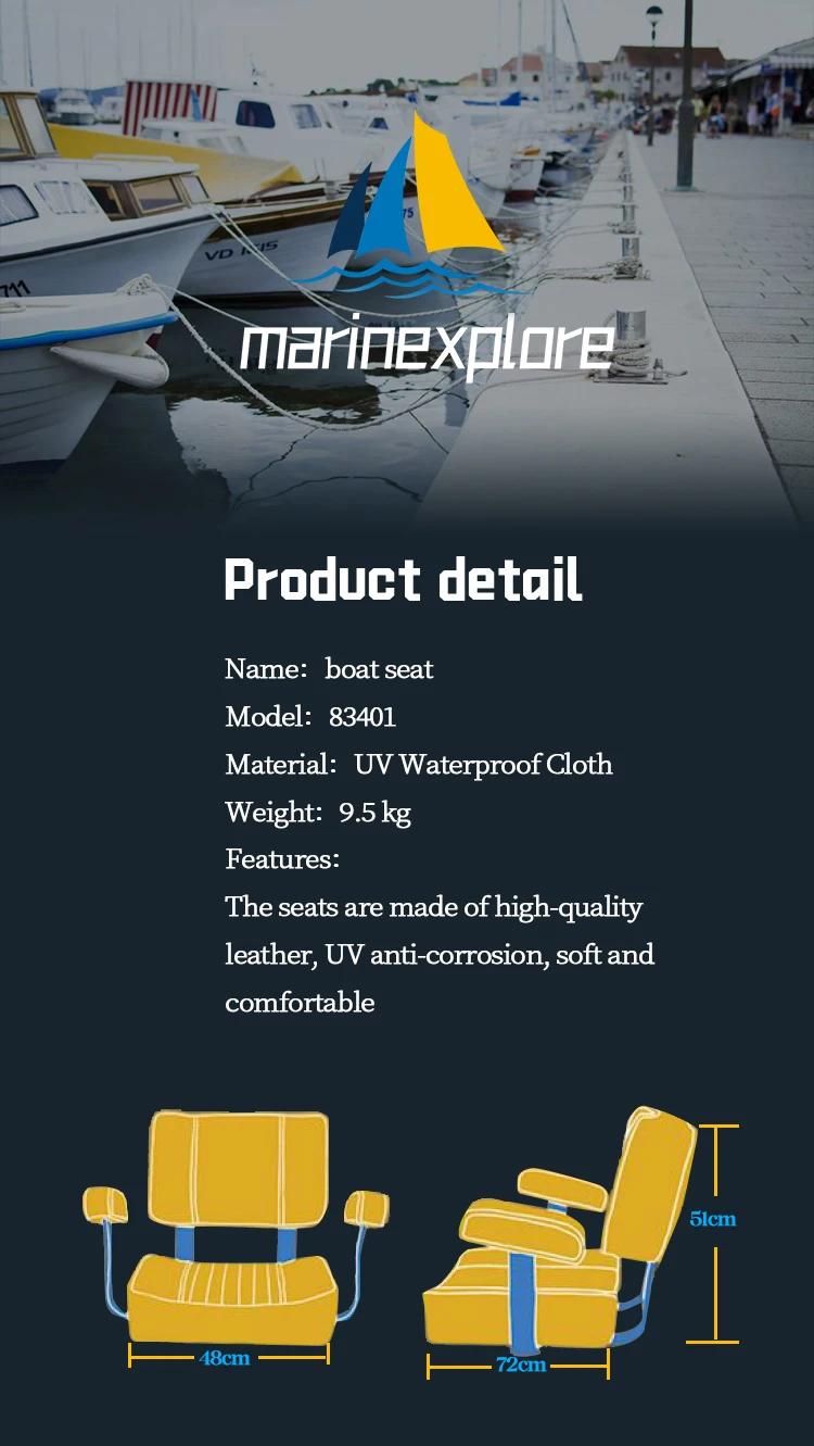 Asiento de barco, silla de barco plegable de cuero anticorrosión marina con diseño ergonómico para accesorios de barco, yate de pesca