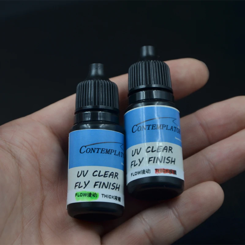 Atado de moscas, 2 botellas, pegamento grueso con acabado transparente UV, atado de moscas, curado instantáneo, pegamento de resina UV, secado rápido, accesorios de pesca con mosca