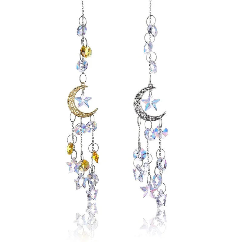 Descripciones: 【Aplicación múltiple】: Cuelgue estos impresionantes atrapasoles arcoíris en su hogar, oficina, jardín, ventana o úselos para exhibición de bodas, colgantes de automóviles o árboles de Navidad, etc. Adecuado para todo tipo de ocasiones, brillan al sol para crear una atmósfera de ensueño. 【Creador de arcoíris】: este hermoso atrapasueños es una combinación de una bola de cristal y una cadena. Las bolas de cristal brillarán intensamente cuando entren en contacto con el receptor de luz. La cadena tiene un color dorado y plateado. El dije tiene una bola de cristal, la luna, el sol y el atrapasueños muestra la belleza de cada bola de cristal. Cada atrapasueños de cristales colgantes presenta un color hermoso y único. Material de cristal de alta calidad: el atrapasueños de cristal es una impresionante decoración de ventana hecha de atrapasueños de vidrieras de alta calidad, que es duradero y exquisito. El atrapasueños refleja la luz del sol y otros tipos de luz cuando se ilumina sobre él. Esta es una hermosa decoración de ventana de arcoíris que refleja perfectamente la luz solar. 【El mejor regalo】: el atrapasueños es el regalo perfecto para las personas que aman las cosas brillantes. Cuando el sol brilla a través de este atrapasoles de cristal, produce un interesante y hermoso arcoíris. El paquete incluye: 1 atrapasueños de cristal