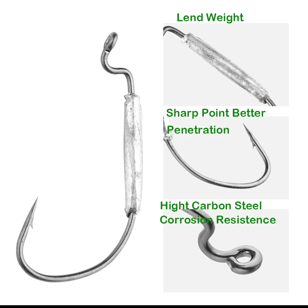 Anzuelos de carbono de alta calidad, fáciles de usar, perfectos para señuelos blandos, gusanos, gambas suaves, gusanos.
