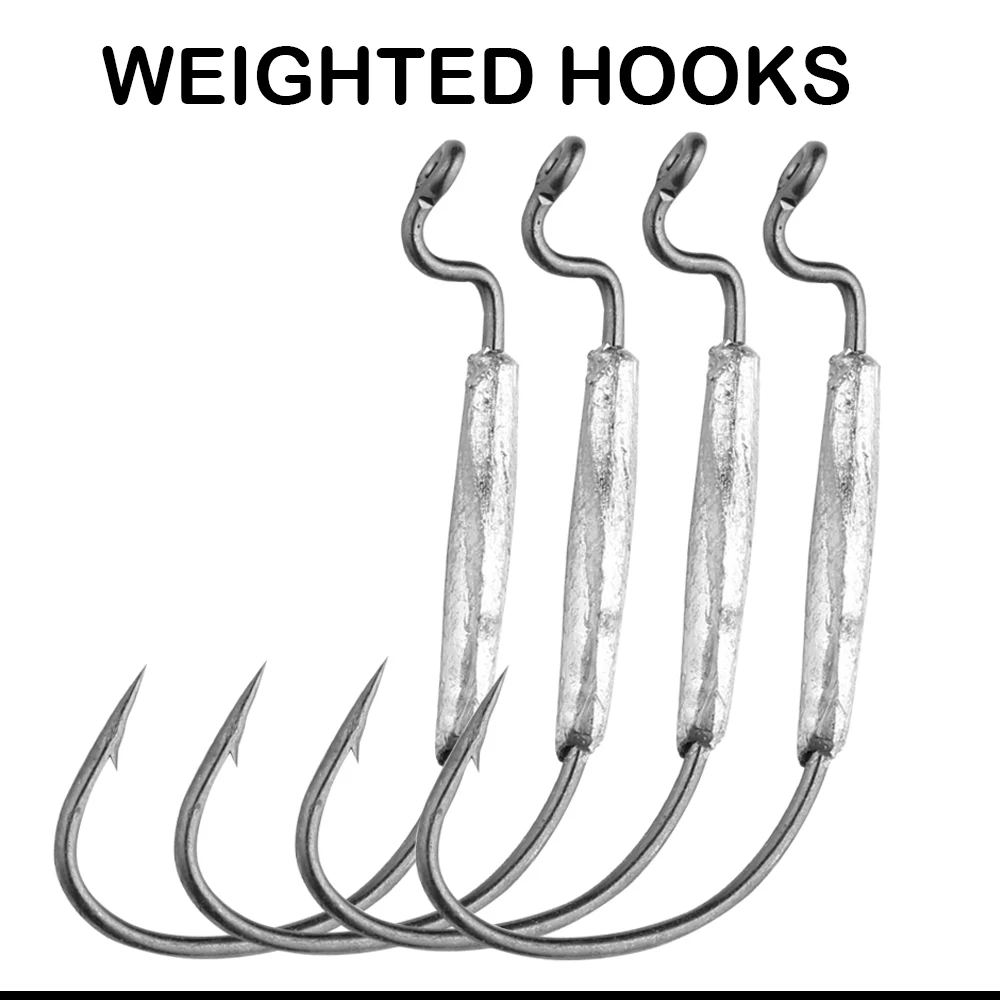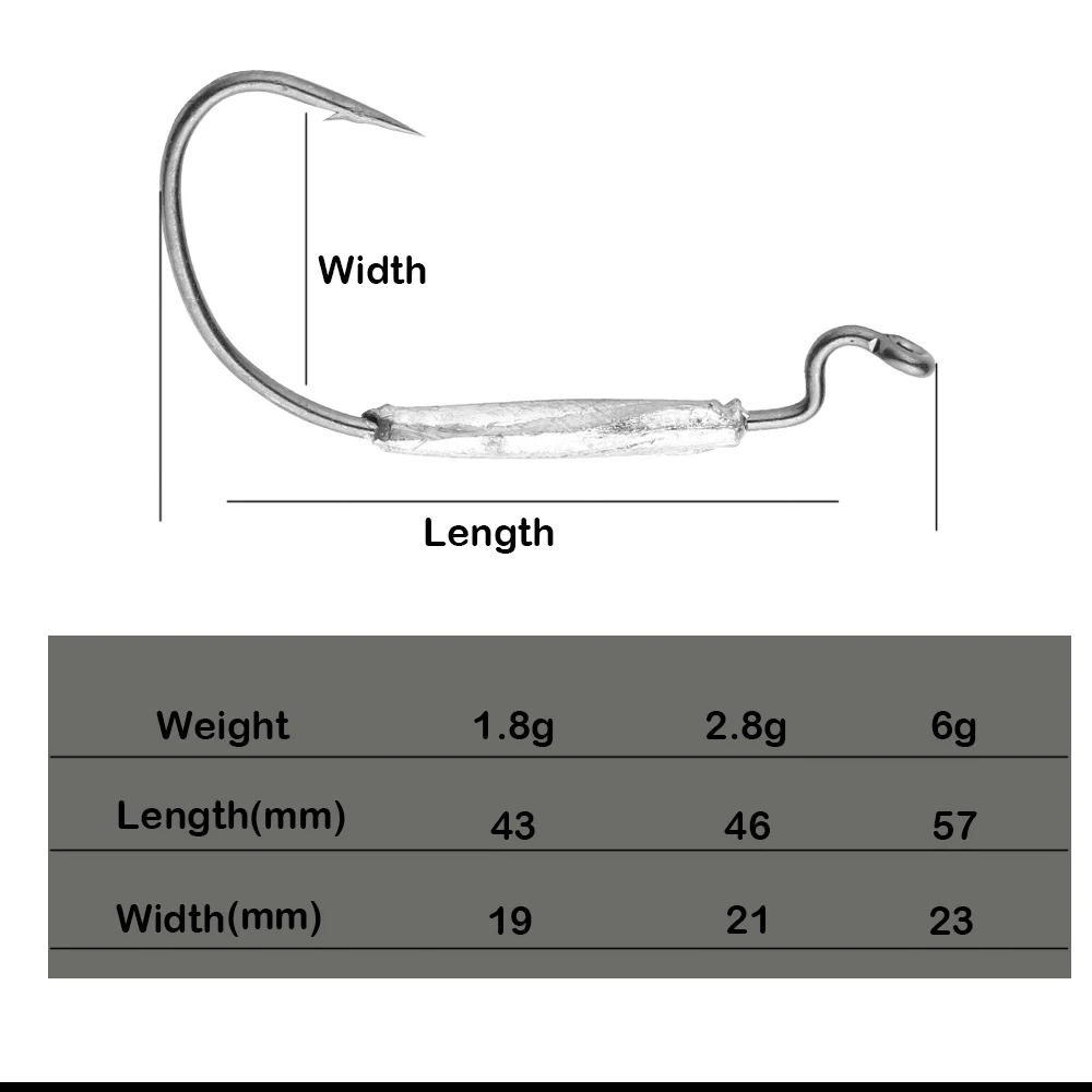 ATUENO-Anzuelo de cebo blando, anzuelo de acero de alto carbono, 1,8G, 2,8G, 6G, anzuelo de manivela, señuelo de gusano, para cebo blando, anzuelo ponderado