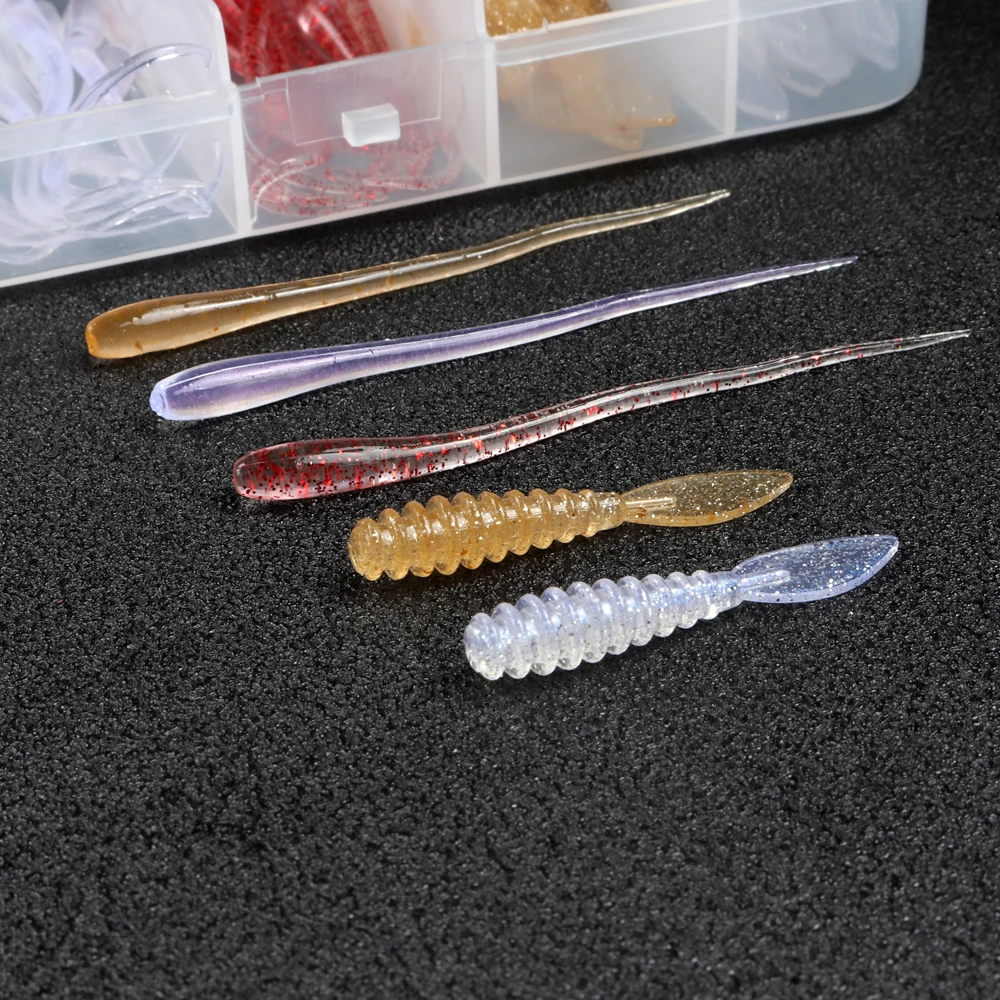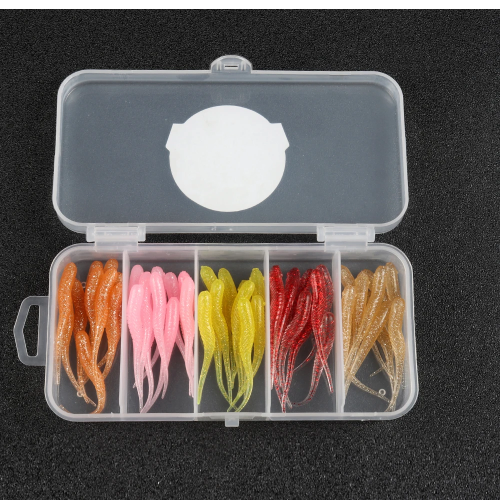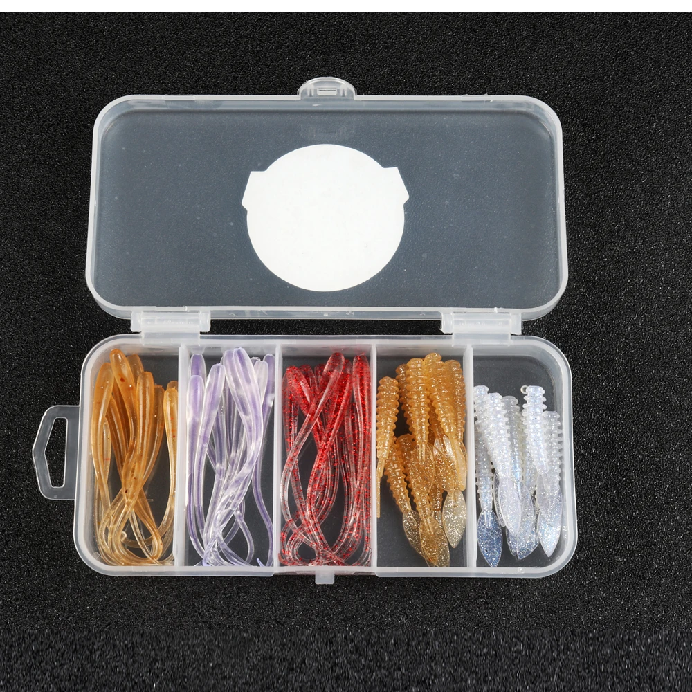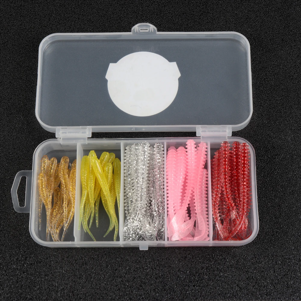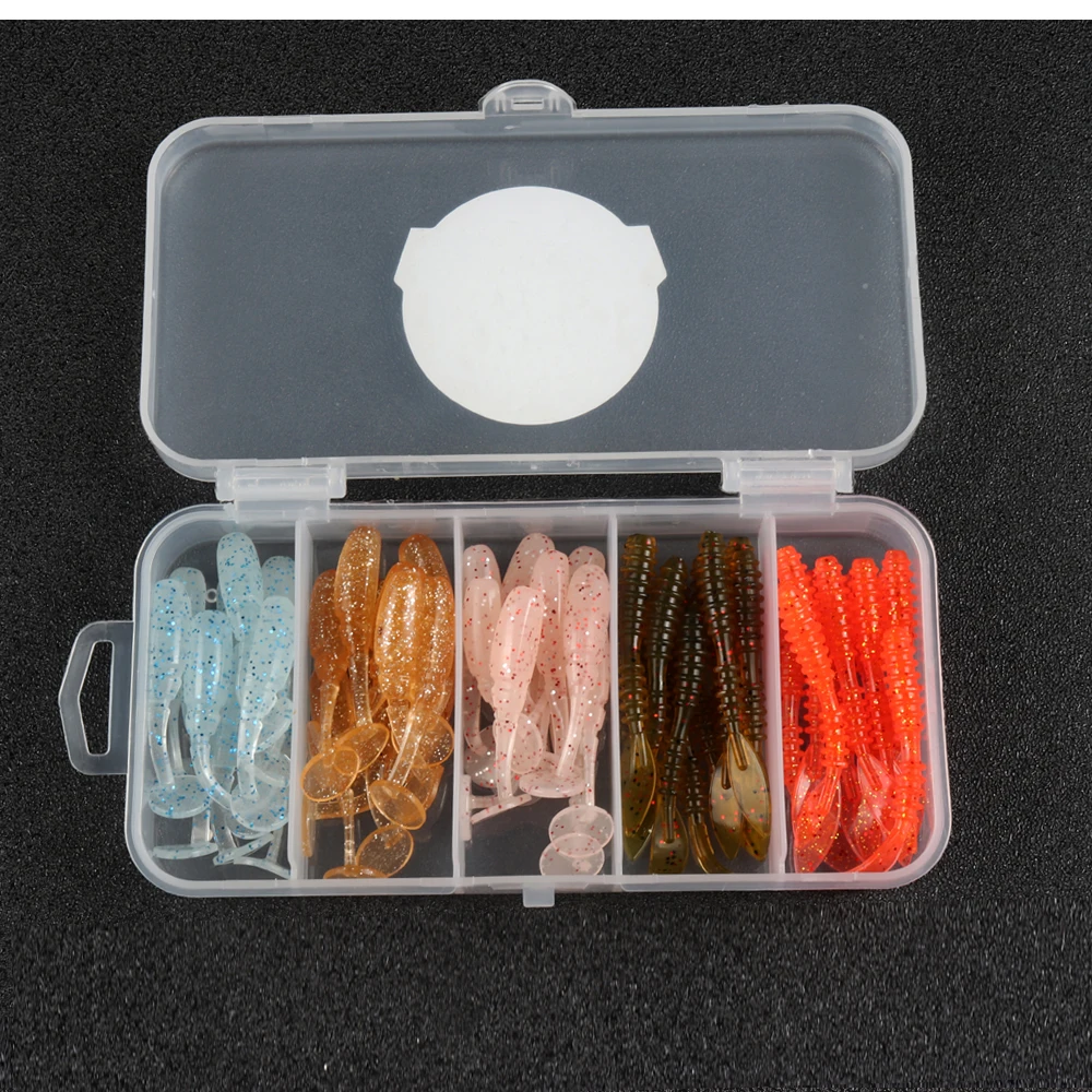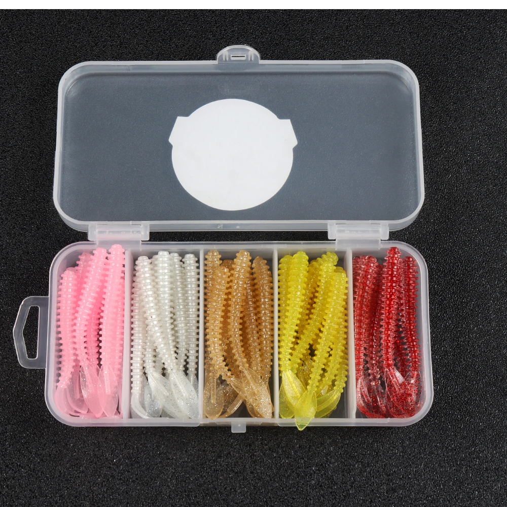 ATUENO Juego de Señuelos de Pesca, 50 Uds., Mini Gusano Suave, Jerkbait, Señuelo de Roca del Océano, Plantilla de Lubina, Kit de Cebo Suave