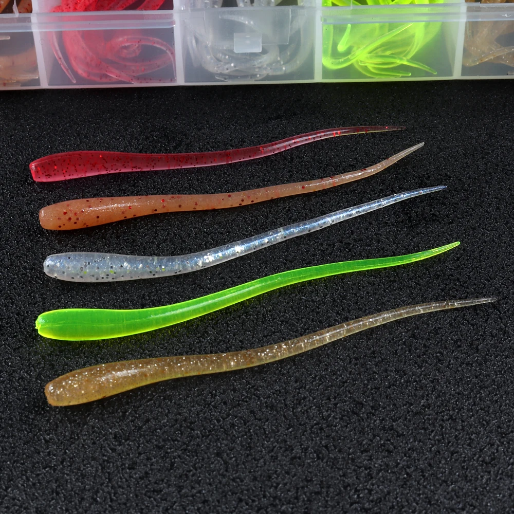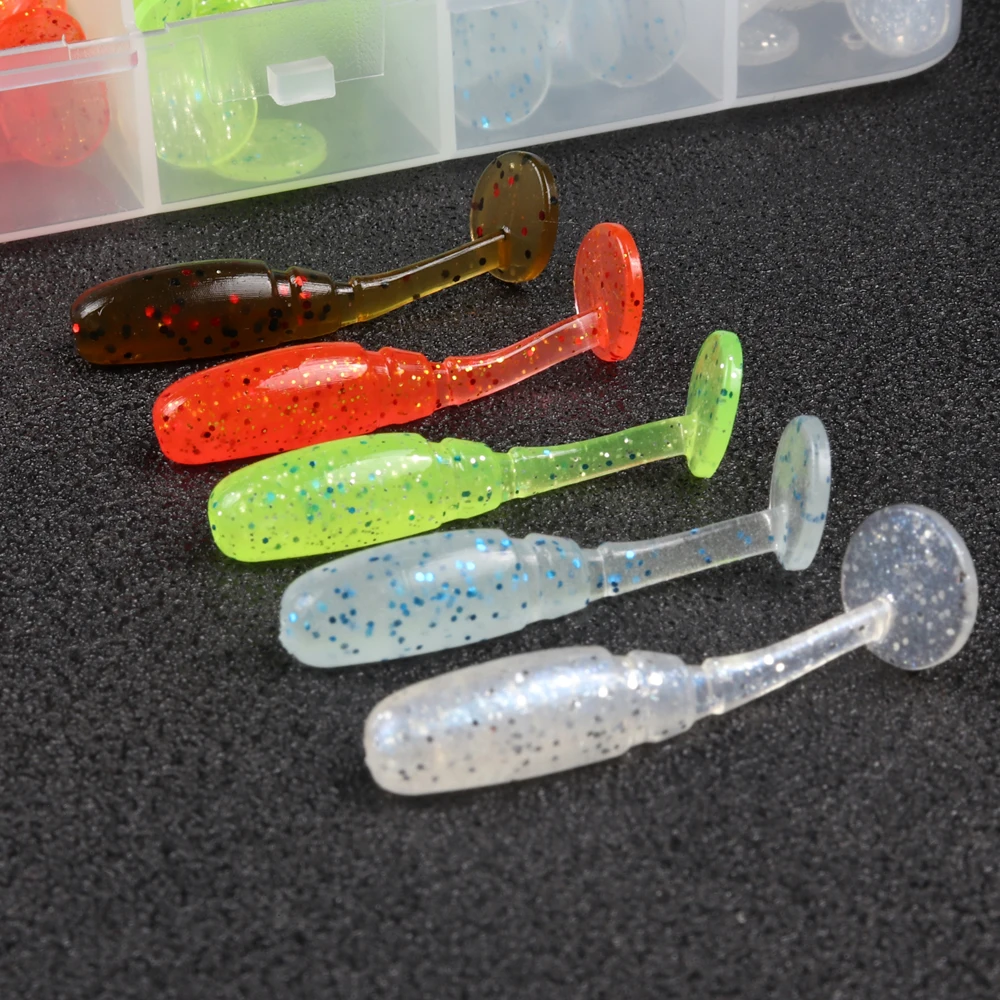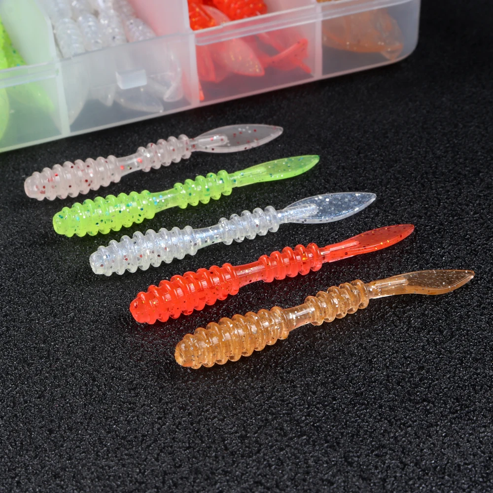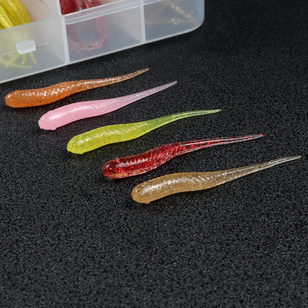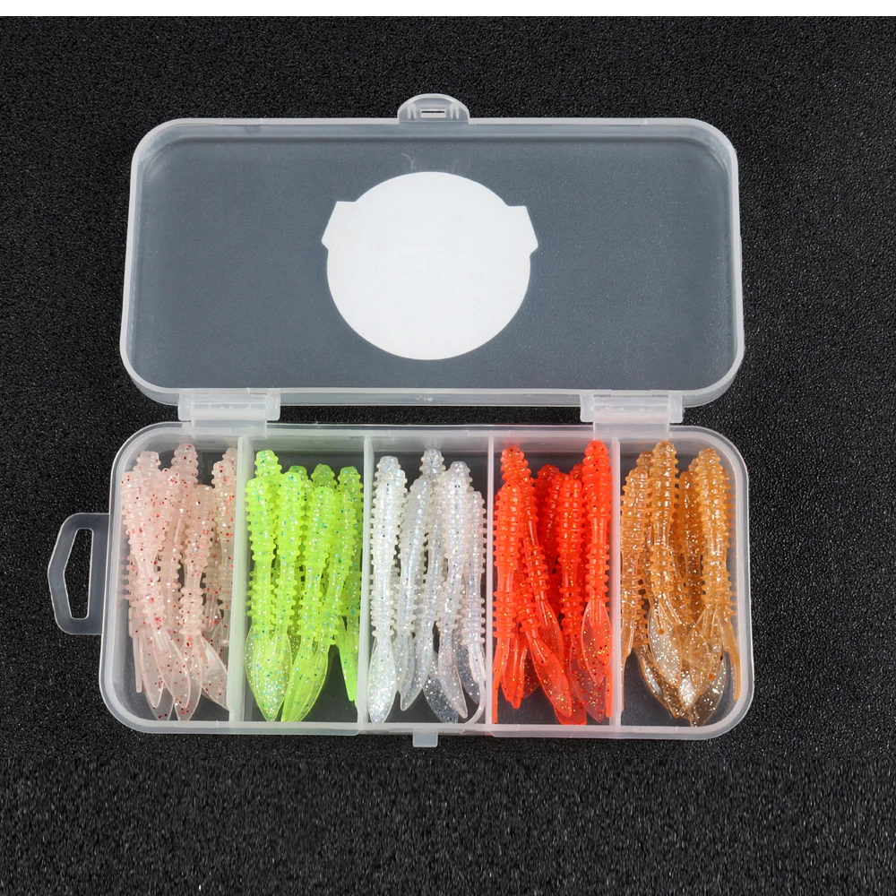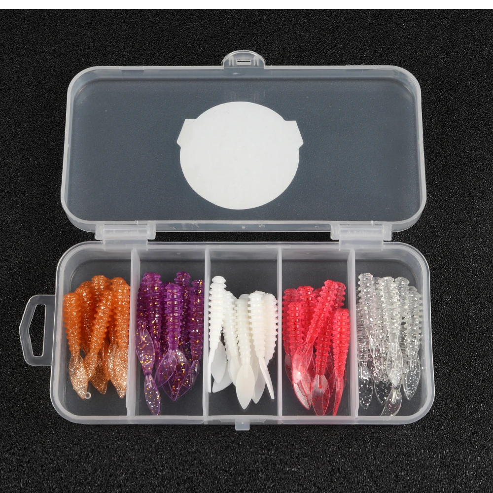 ATUENO Juego de Señuelos de Pesca, 50 Uds., Mini Gusano Suave, Jerkbait, Señuelo de Roca del Océano, Plantilla de Lubina, Kit de Cebo Suave
