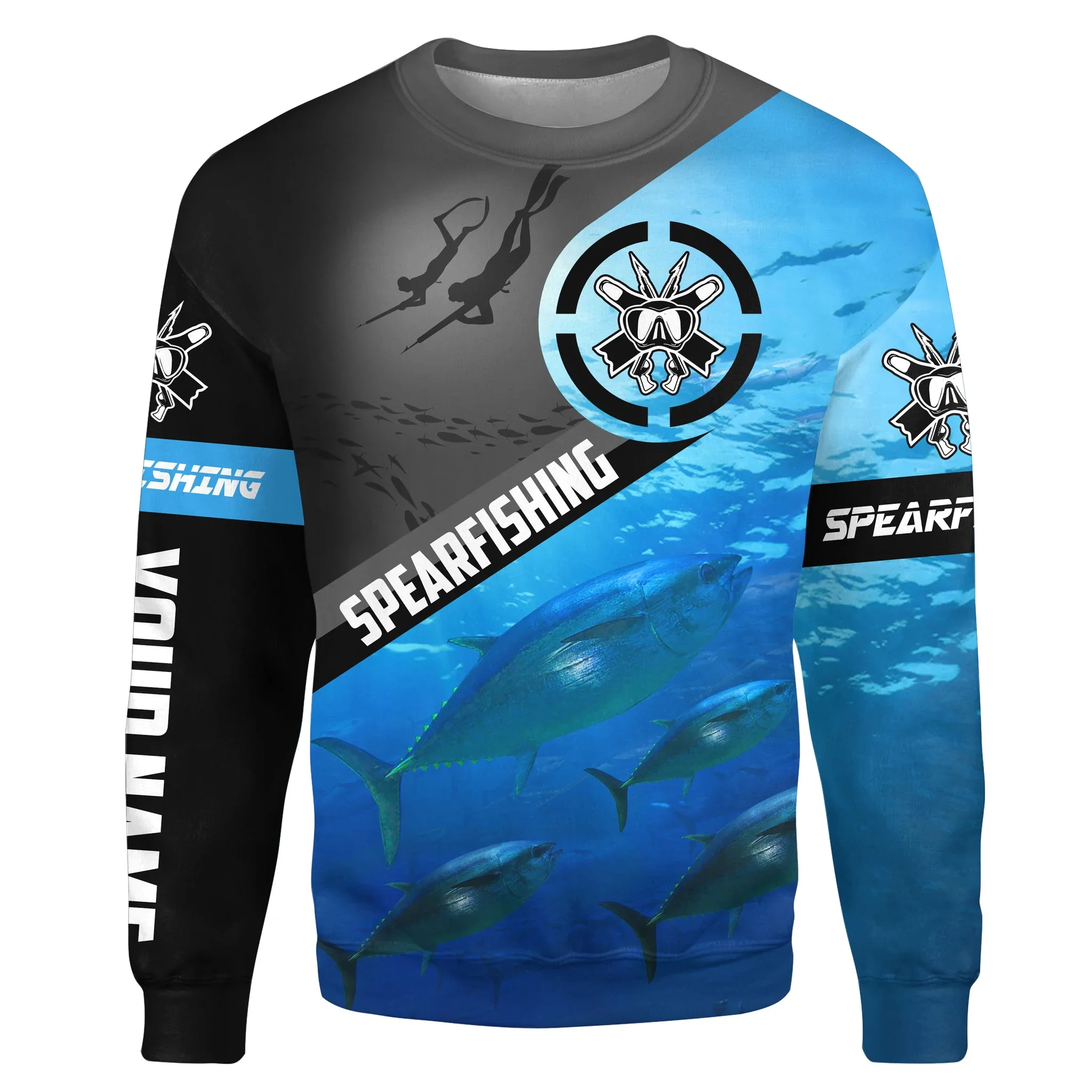 Atún azul agua pesca submarina bajo el mar nombre personalizado 3D impreso hombres Sudadera con capucha y sudadera Unisex Zip Casual chándales KJ914 - imagen 2
