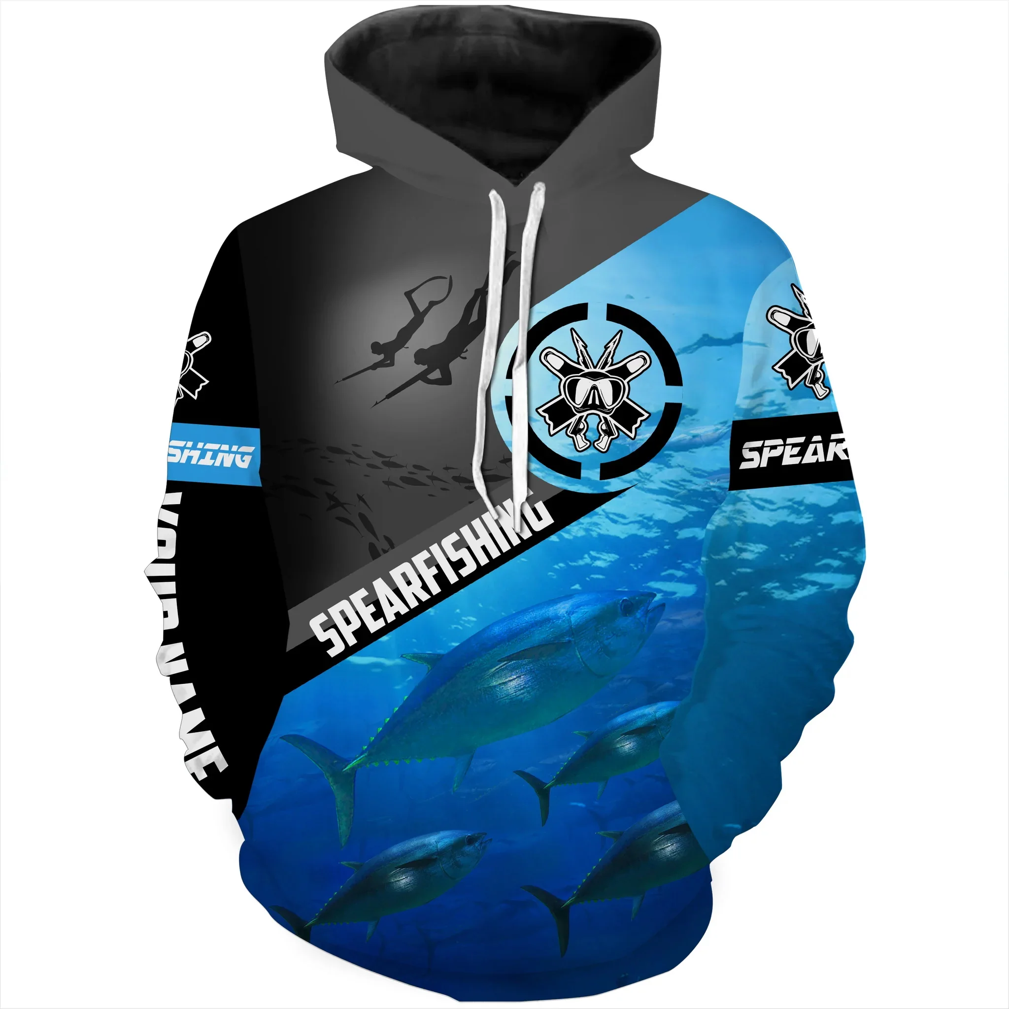 Atún azul agua pesca submarina bajo el mar nombre personalizado 3D impreso hombres Sudadera con capucha y sudadera Unisex Zip Casual chándales KJ914 - imagen 1