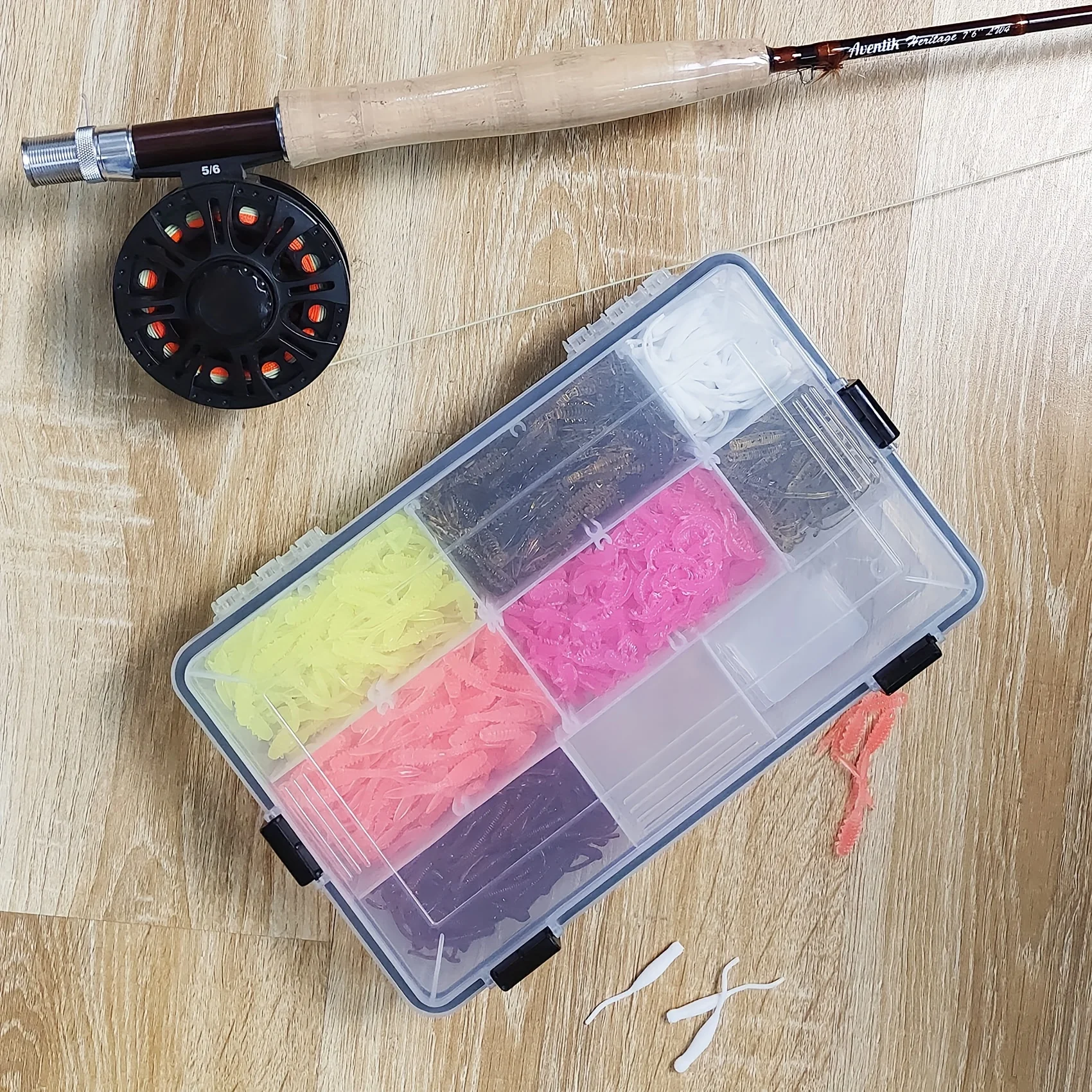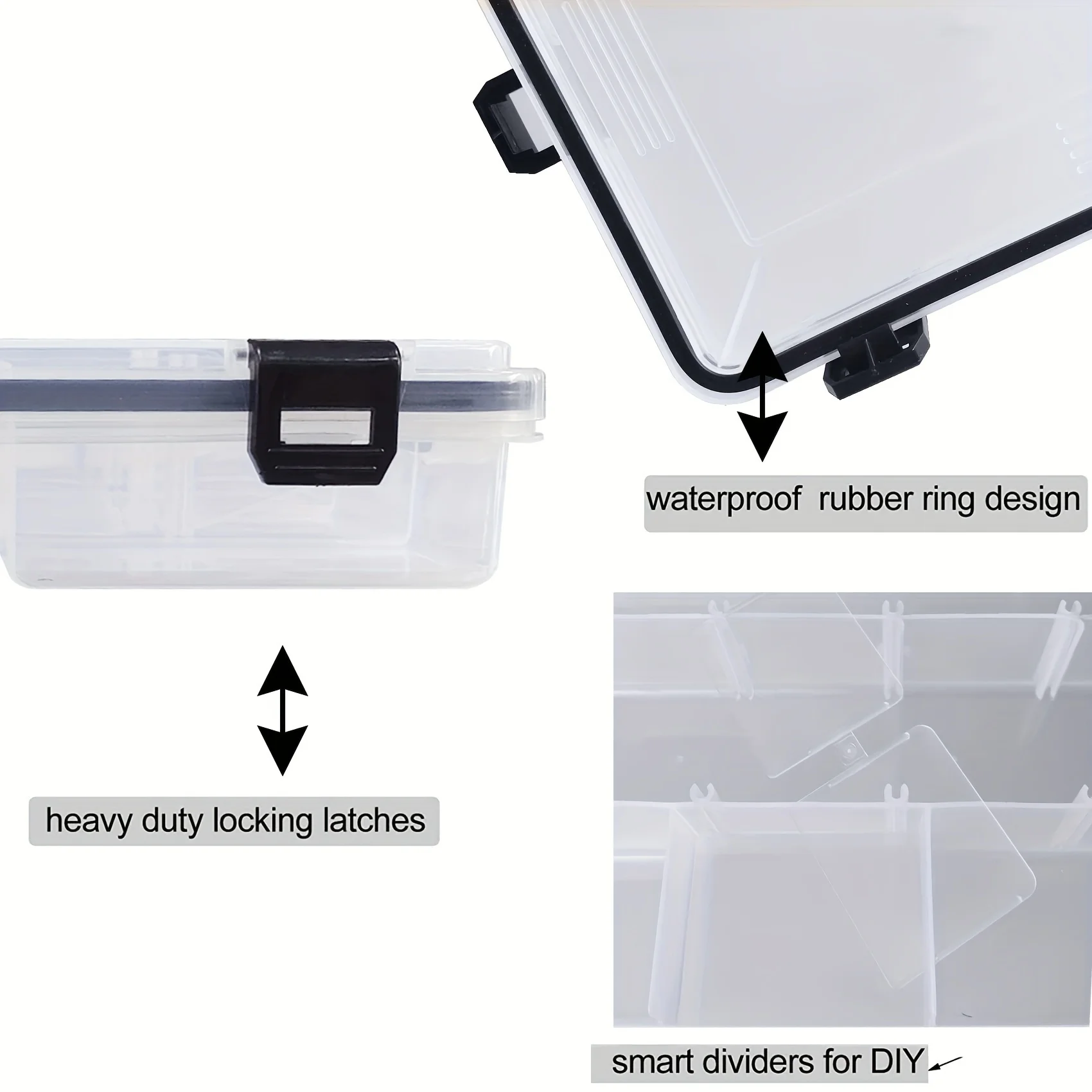 Los divisores ajustables podrían proporcionar flexibilidad para cargar el estuche de utilidad con cebos de plástico, aparejos terminales, tuercas, tornillos, cuentas, alambre, carretes de hilo y artículos pequeños.