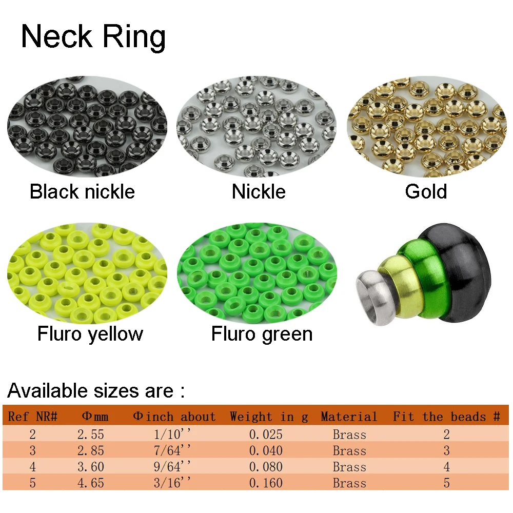 DISEÑO INNOVADOR: Los anillos del cuello obtienen un punto caliente detrás de la cuenta de su mosca. Con avellanado, para ayudar a enhebrar el anillo en un anzuelo y aumentar aún más el peso de la mosca.