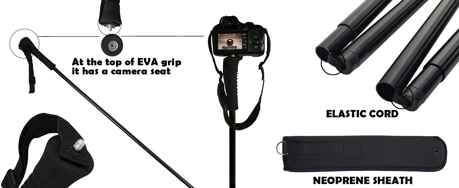 En la parte superior de la empuñadura EVA tiene un asiento de cámara que permitirá una sesión fácil. En la parte inferior del personal de vadeo equipado con una punta de tungsteno, es fuerte y duradero contra grandes rocas mientras vadea. Diseñado para usos más diversificados, vadeando en el agua, caminando en el campo o escalando montañas rocosas.