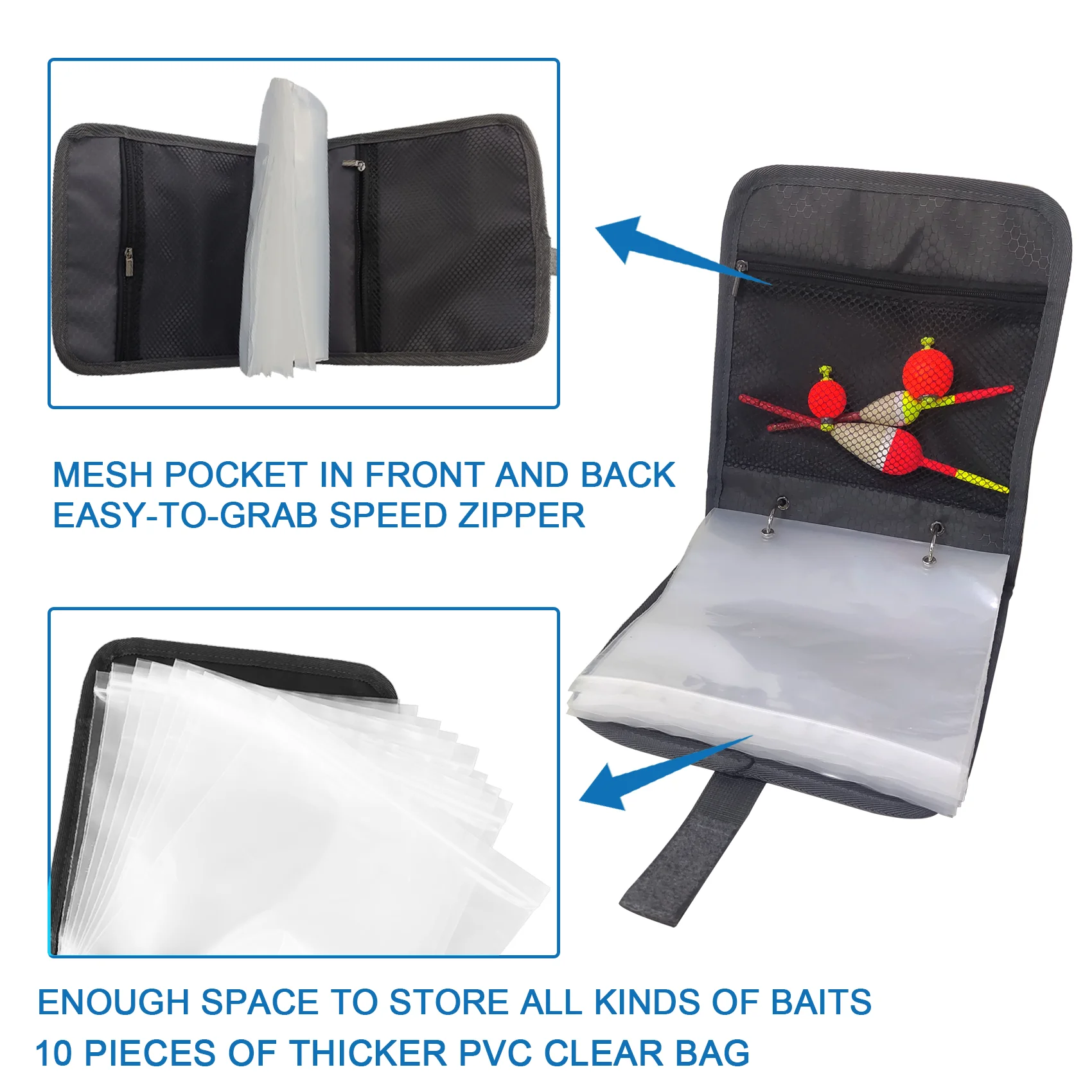 Diseño profesional: la carpeta multiusos con anillo de acero inoxidable ofrece una organización flexible para organizar la diversidad de cebos, las bolsas gruesas protegen sus cebos contra caídas.