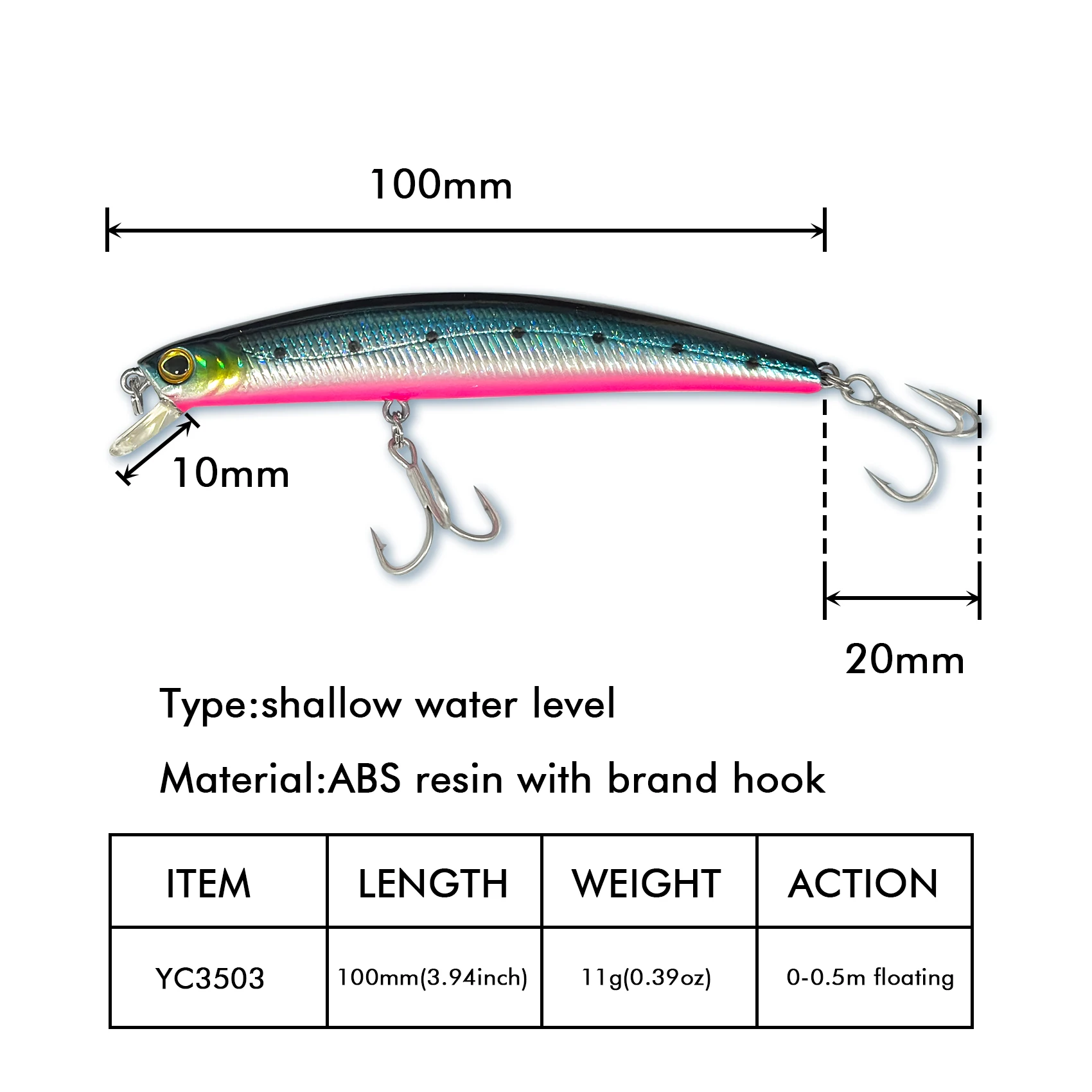 Hecho de plástico duro de alta calidad, este señuelo flotante para pececillos resiste golpes repetidos y condiciones de pesca duras.