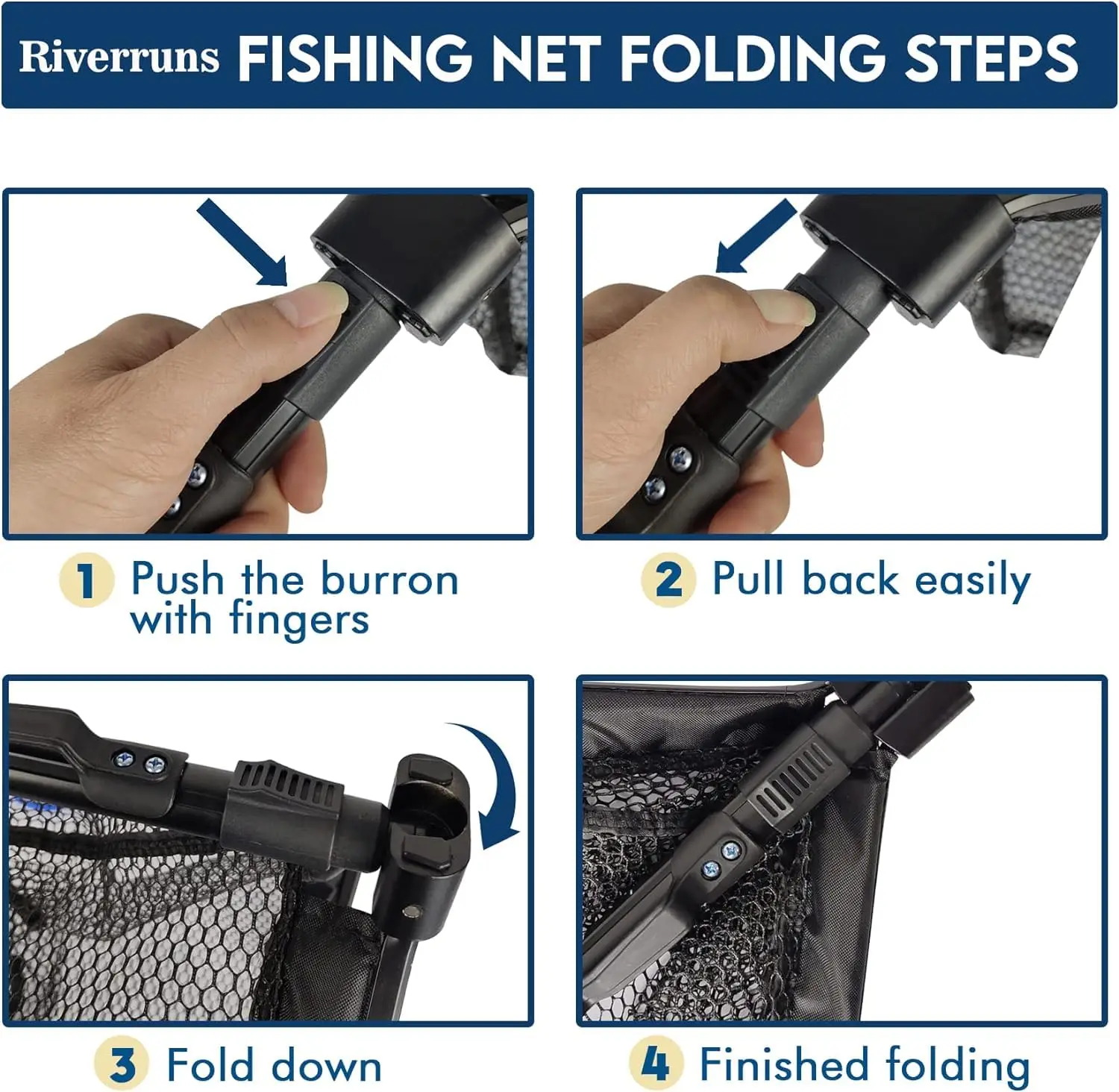 La red plegable está equipada con un interruptor giratorio desmontable, lo que permite un fácil ajuste vertical y horizontal de la cabeza de la red, adaptándose a varios ángulos, asegurando la captura segura y precisa de peces.