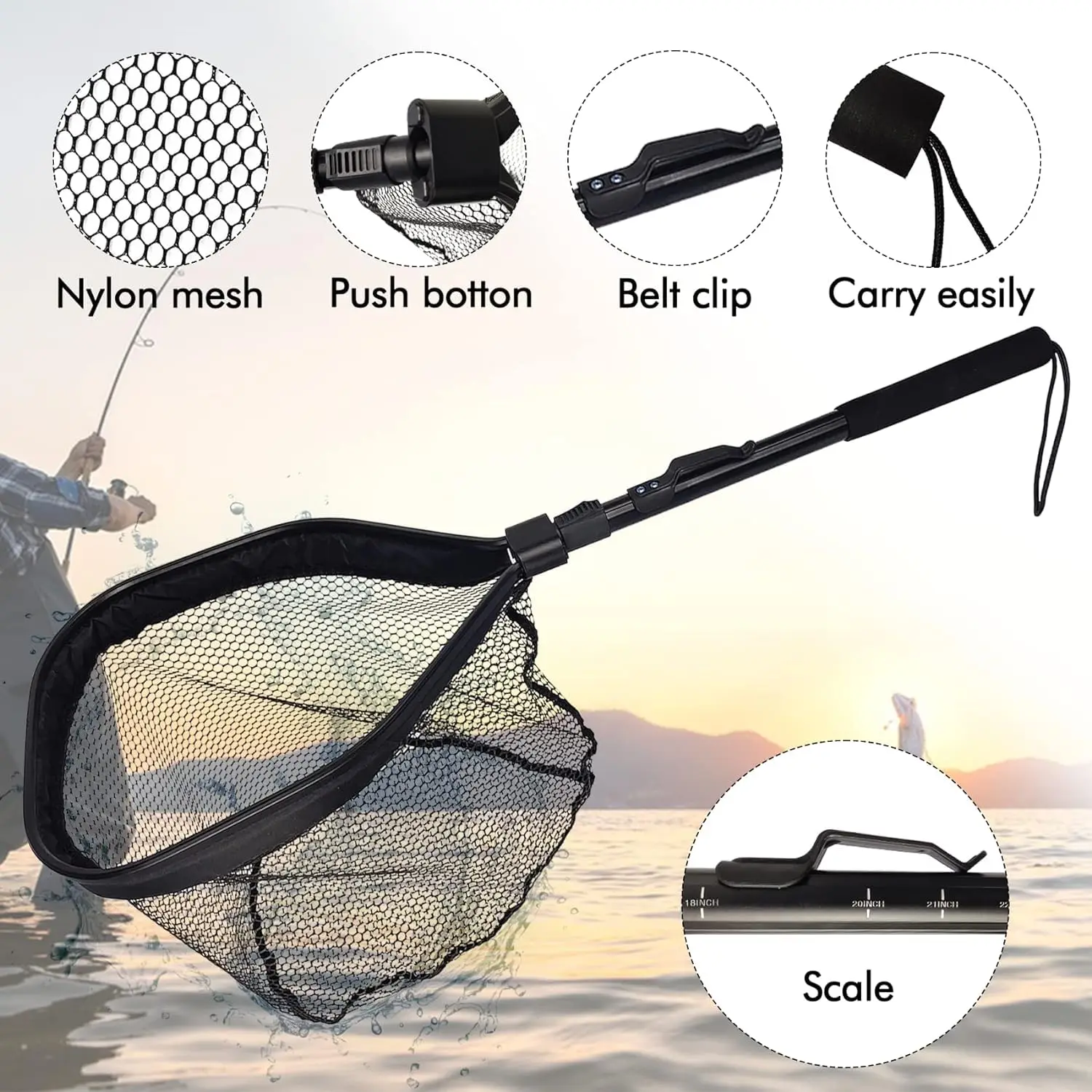 Con un diseño flotante, esta red plegable infunde confianza durante las actividades acuáticas. La red permanece a flote, reduciendo el riesgo de pérdida accidental y facilitando la fácil recuperación. Con esta flotabilidad adicional, puede navegar con confianza en varias condiciones de agua sin el temor de perder su valioso equipo de pesca.