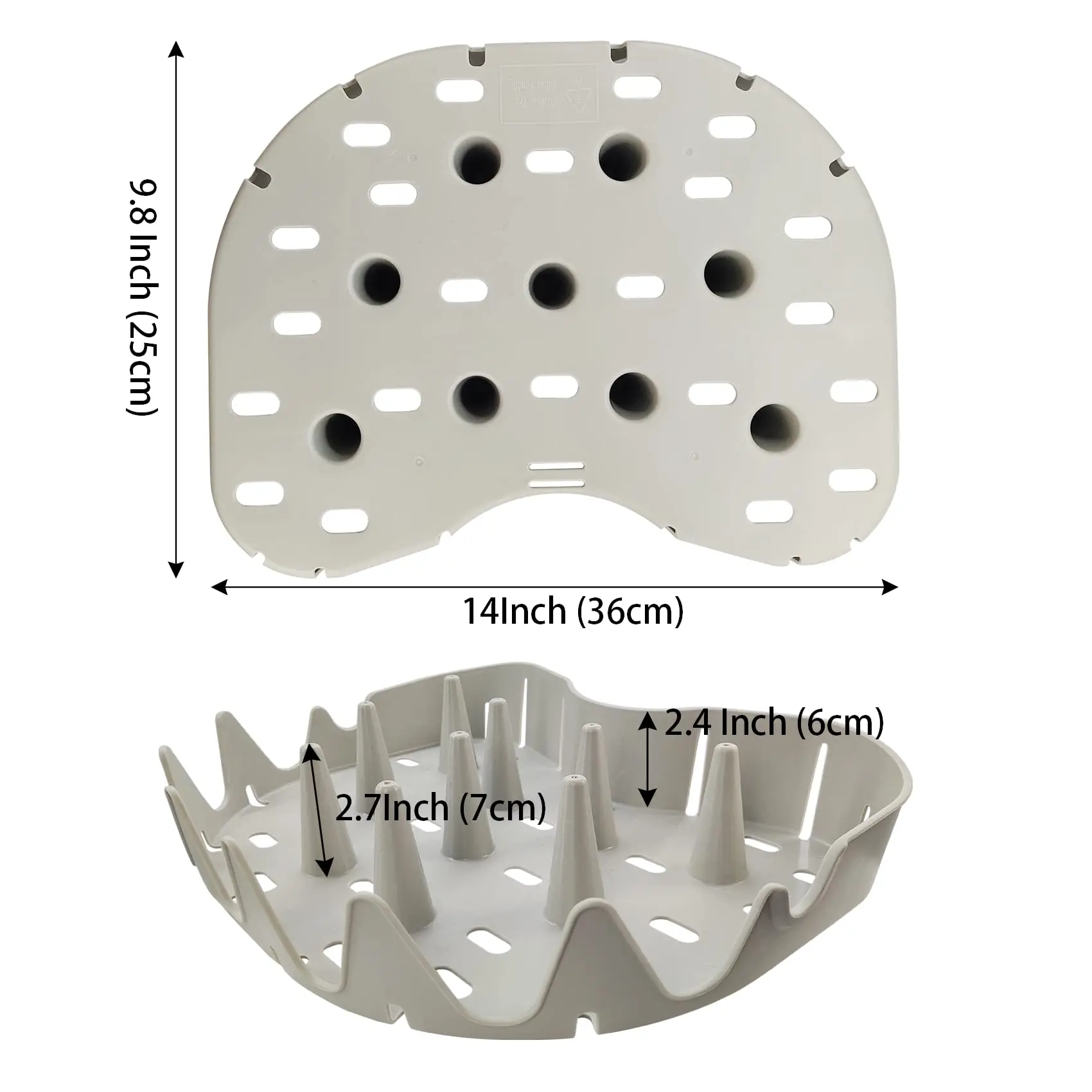 La cesta de pelado está hecha de polipropileno de alta calidad que es súper ligero y sin cargas. El tamaño 14X9,8X2,4 pulgadas (36X25X6cm) se adapta a casi cualquier tipo de cuerpo.