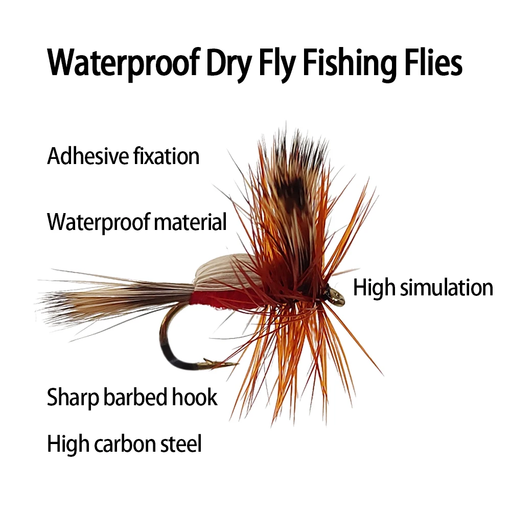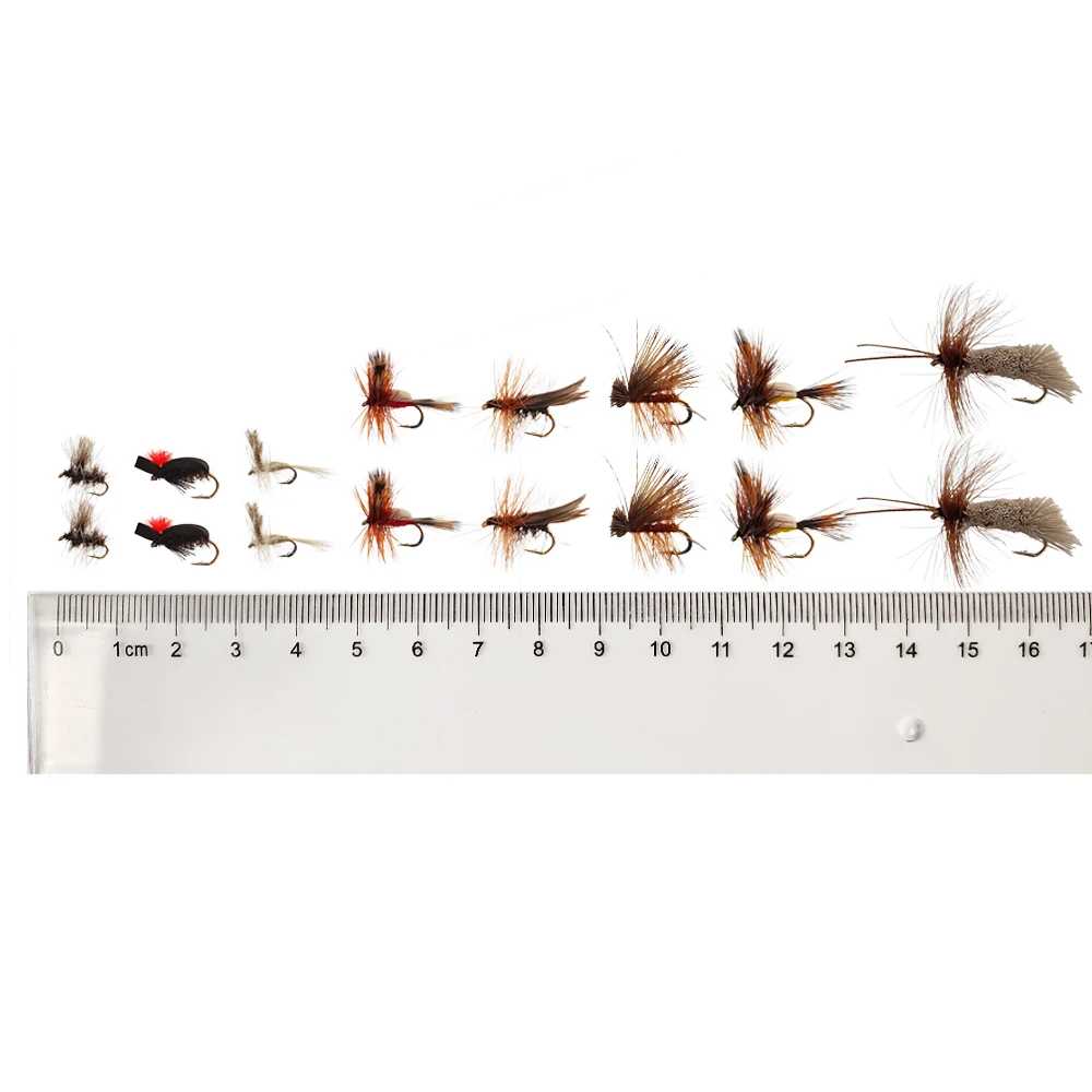 Estos 12 tipos de moscas secas de alta calificación vienen en los 2 tamaños más utilizados.