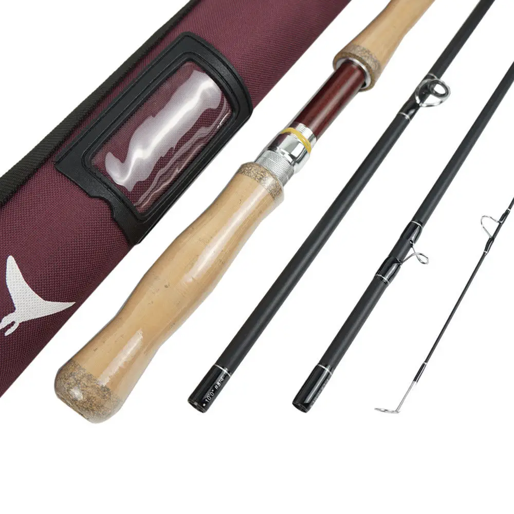Carrete clásico de madera de rosa dura de acción rápidaPac Bay duro cromado plateado serpiente guíasAAA interruptor de varilla de corcho acabado negro mate interruptor corto varillas de vuelo secciones con puntos de alineación para un montaje rápido. Excelente embalaje de transferencia de energía: tela de varilla de algodón + Tubo de varilla