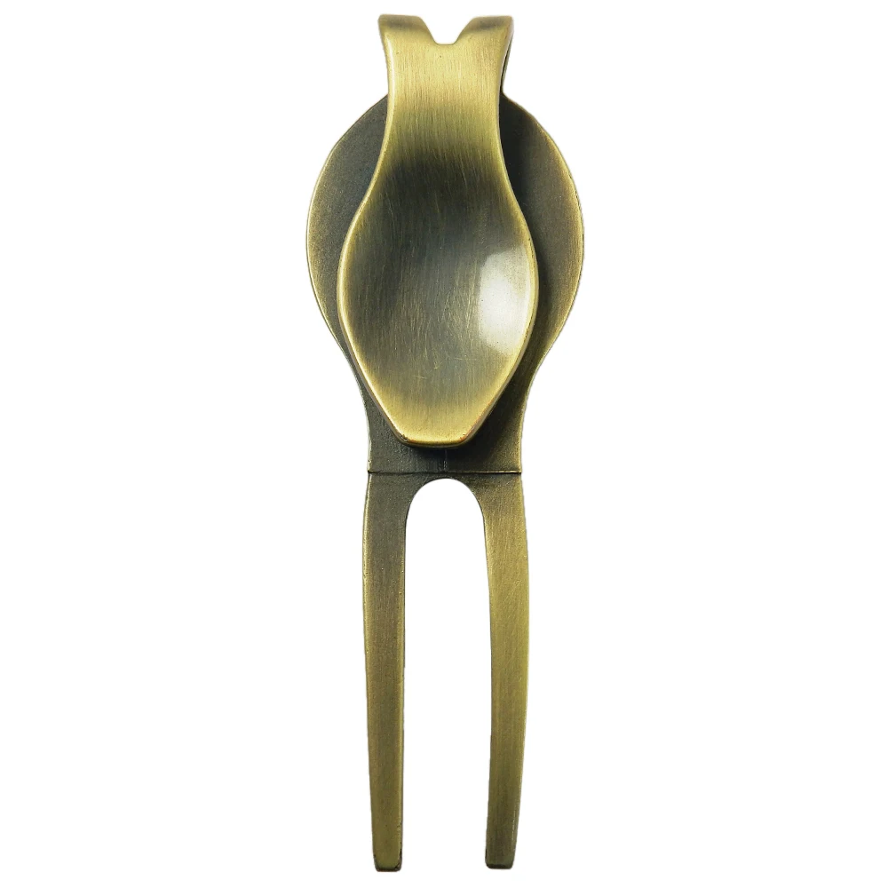 Material: Aleación de zinc Color: bronce/plata (opcional) Tamaño: 86*28*13mm/3,4*1,1*0.5in Tamaño del paquete: 125*55*20mm/4,9*2,2*0.8in Peso del paquete: 34g/1,2 oz Lista del paquete: 1 * Golf Pitchfork Características: material de aleación de zinc de alta resistencia para mayor durabilidad. El marcador se puede colocar en la herramienta divot. El diseño ergonómico cabe fácilmente en la palma de su mano. Gran herramienta divot para golfista.