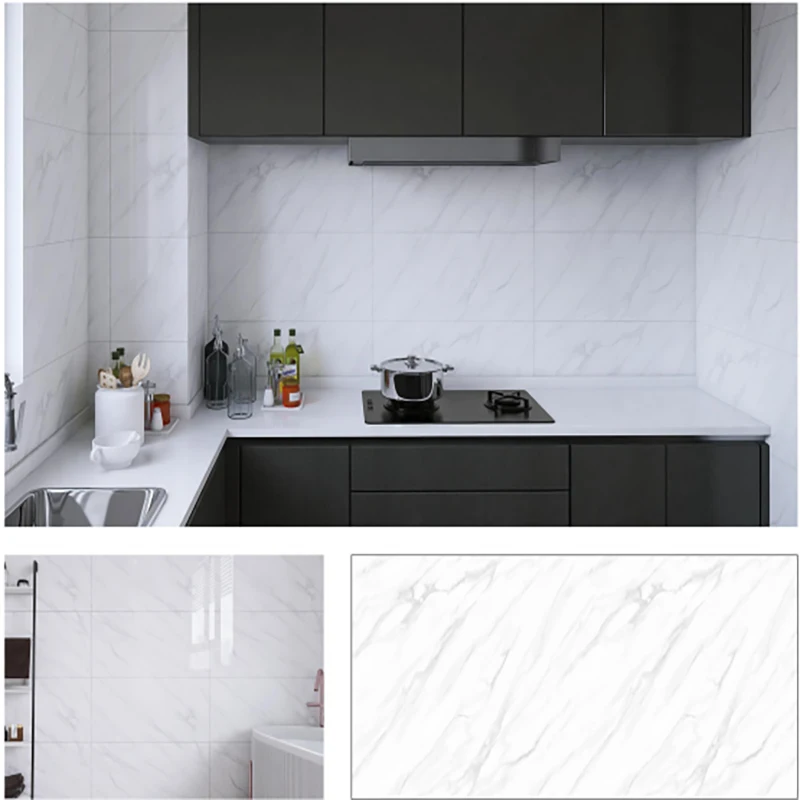 Características: impermeable, a prueba de aceite, retardante de llama, fondo de sala de estar, baño, cocina, adhesivo de pared autoadhesivo anti-azulejos de mármol engrosado.