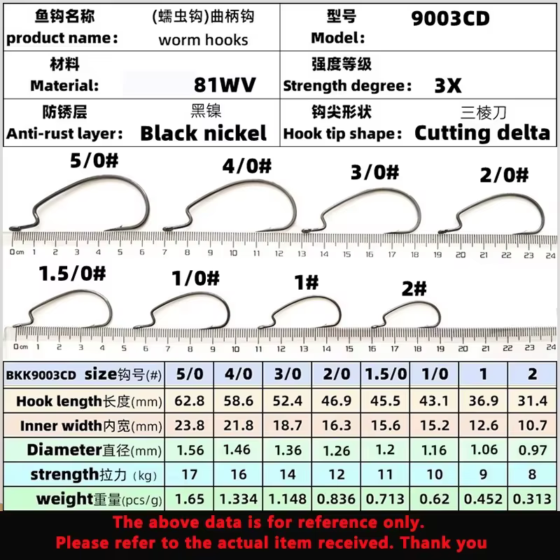 b** 20 piezas anzuelo de pesca con manivela 5/0 - 1 # 9003 CD níquel negro 3X fortalecer anzuelo de gusano cebo de Jigging Texas Rig carpa lubina anzuelo