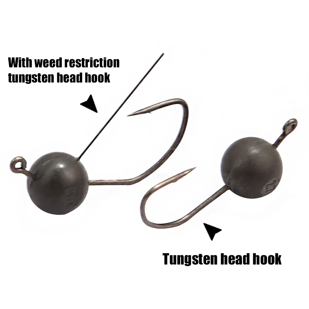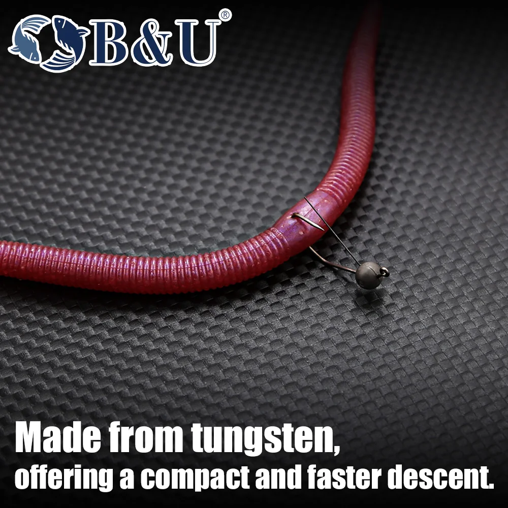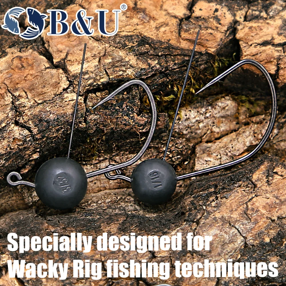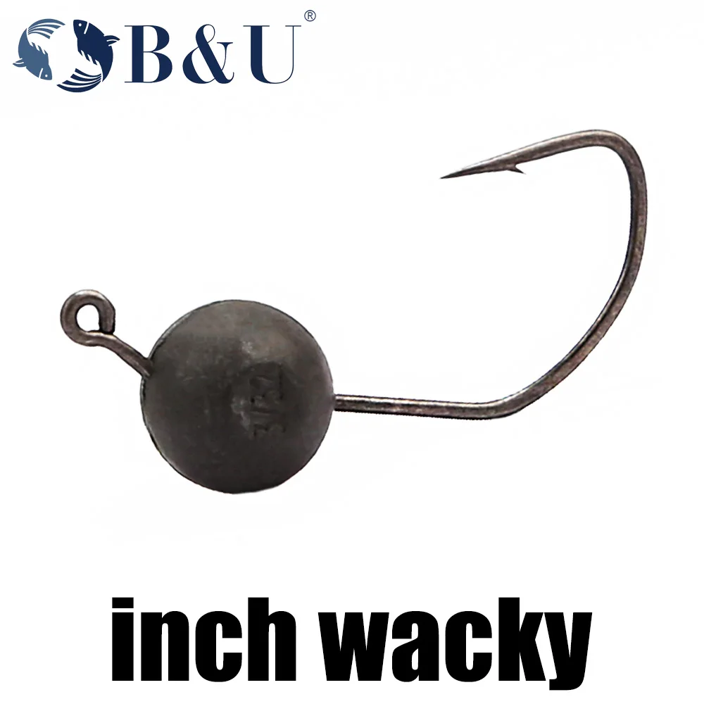 B & U-anzuelo de pesca loco de tungsteno pulgadas, anzuelo con cabeza de anzuelo sin malezas para cebo de señuelo suave de gusano, anzuelos de pesca de jigging con manivela de cabeza redonda