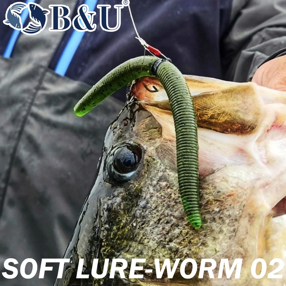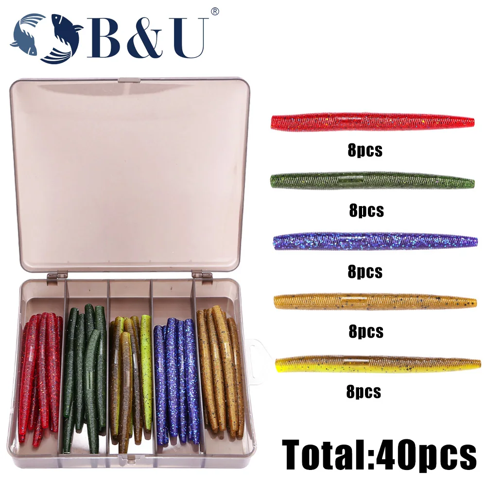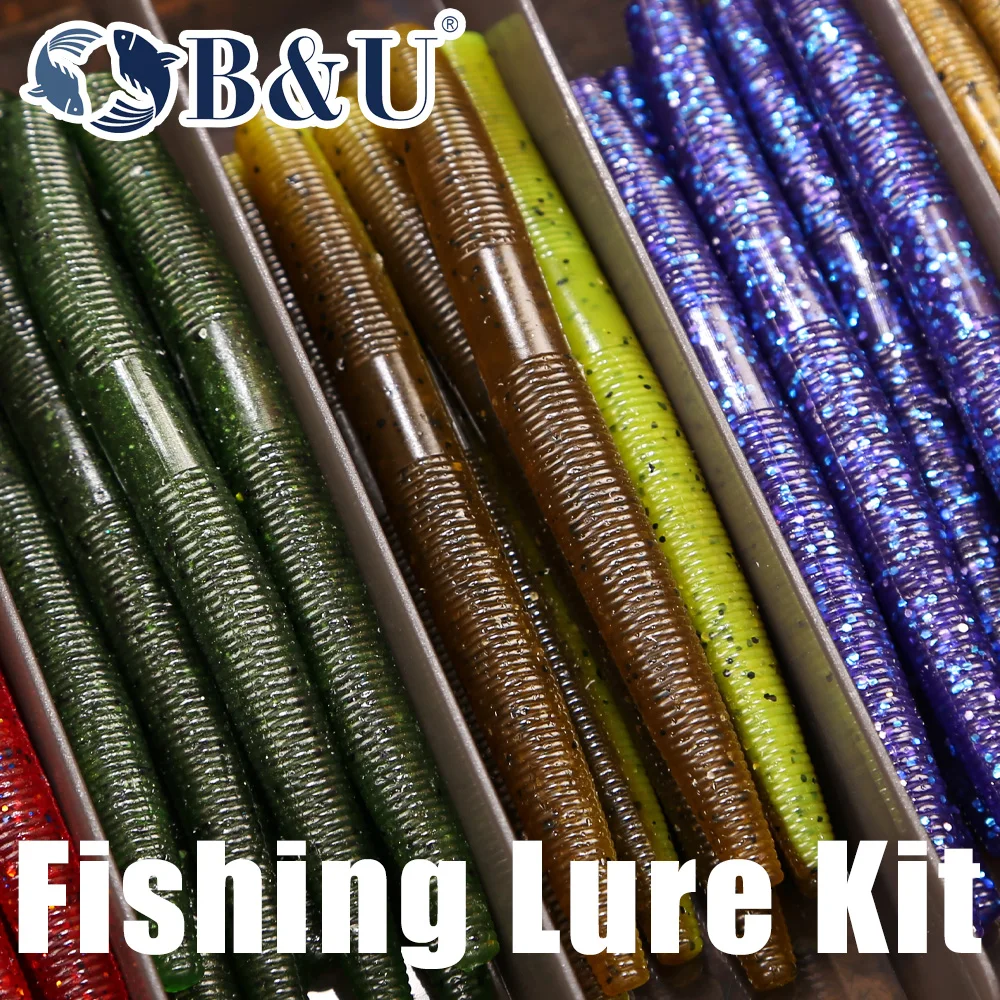 B & U Juego de señuelos de gusanos blandos multicolores con caja de almacenamiento, cebos de pesca perfumados con camarones para kit de señuelos de lubina de agua dulce y salada