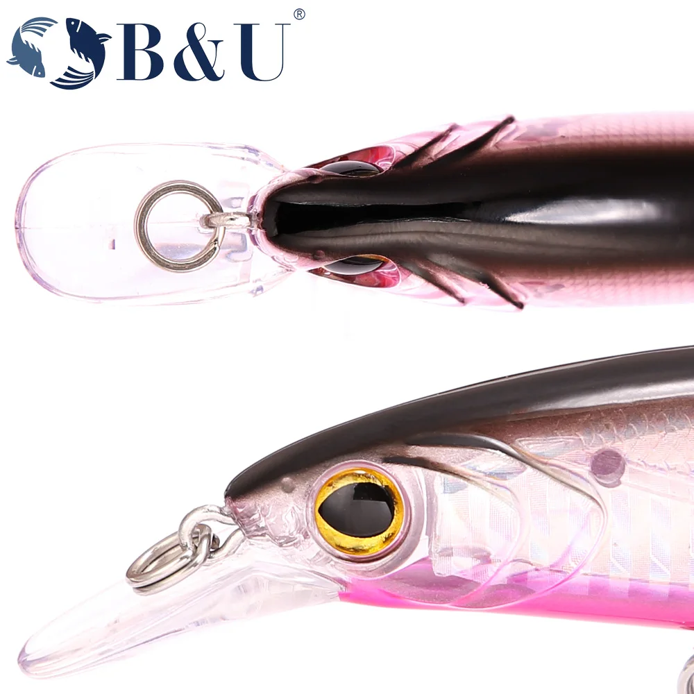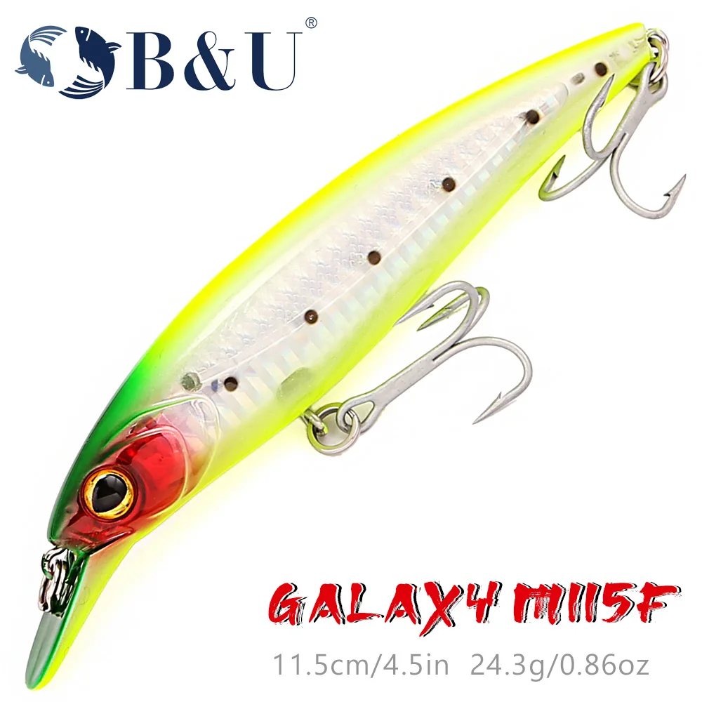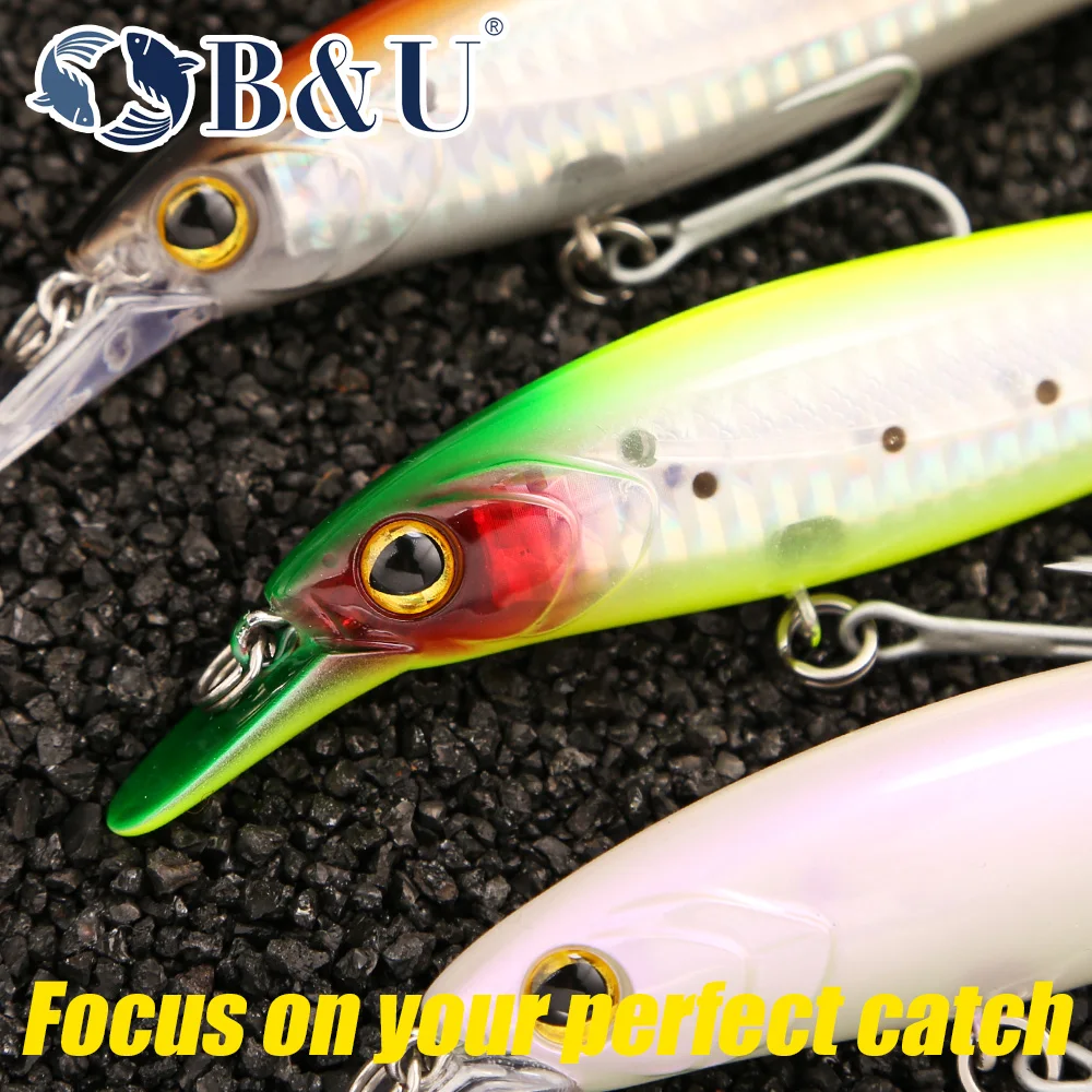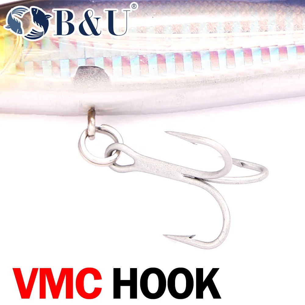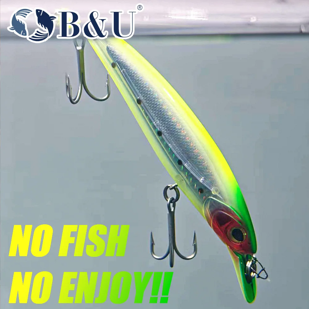 B & U Minnow flotante sistema de fundición larga cebo duro, Señuelos de pesca de mar de agua salada para atún Dorado Bass con anzuelos triples afilados